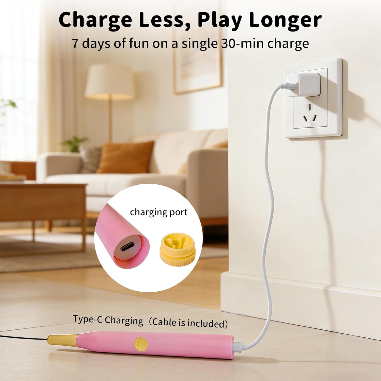 Quiet & Rechargeable: With a whisper-quiet motor, this electronic cat toy won’t startle your pet or disrupt your peace. Skip the battery hassle, a quick 30-min Type-C charge powers 7 days of typical play, making it an always-ready feather toy for bored indoor adult cats.