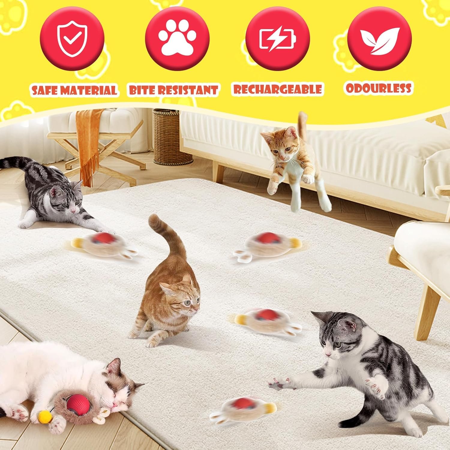 【Durable and Safe Design 】The cat ball is crafted from high-quality, pet-safe, non-toxic materials that are free from harmful chemicals. Made with durable, scratch-resistant plastic or rubber, the ball can withstand rough play, even from the most energetic cats. Its sturdy construction ensures it won’t easily crack or break, providing long-lasting use.
