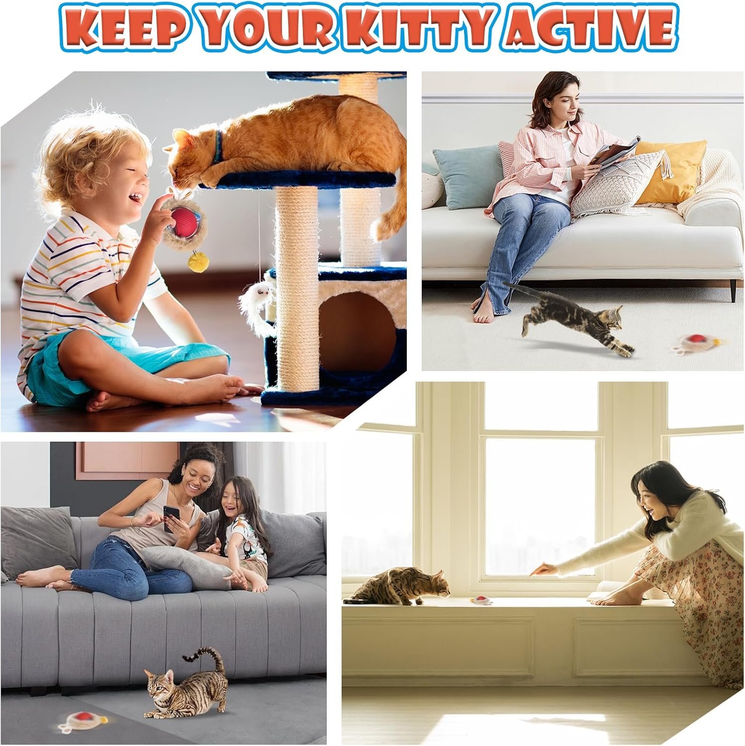 【Strong driver Interactive Cat Toy 】These moving cat toys for indoor cats are perfect for both independent play and interactive sessions with your cat, making them ideal for promoting mental and physical exercise.