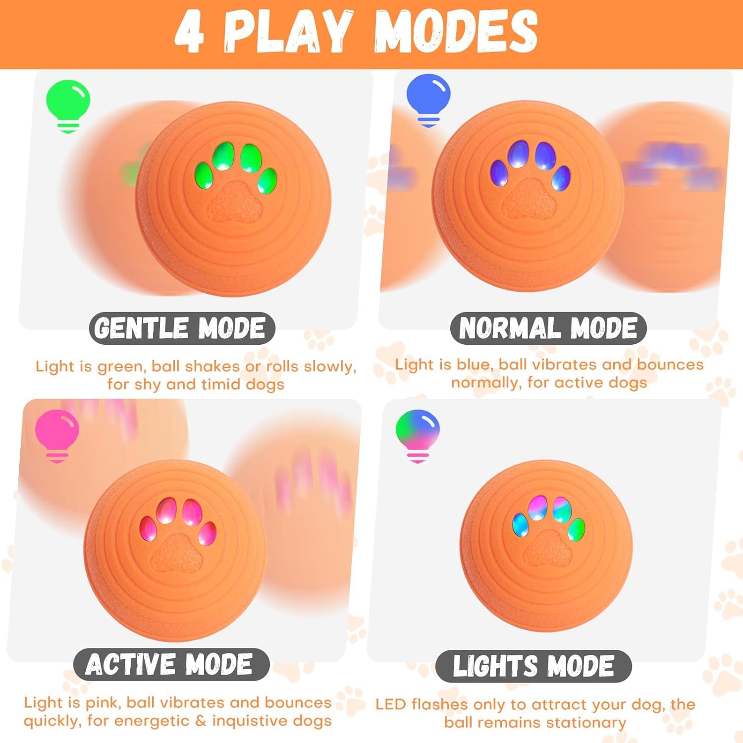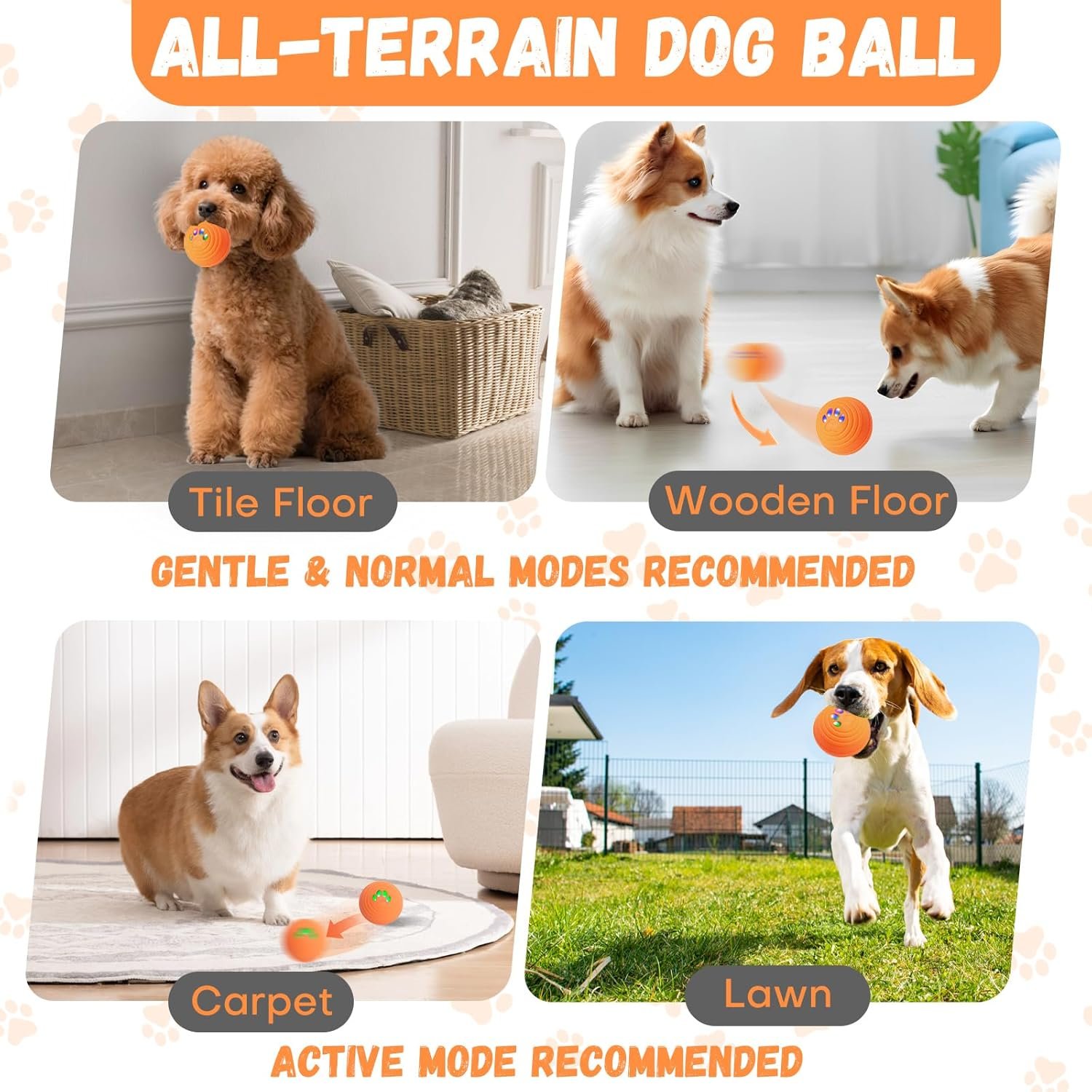 Interactive Dog Toys, 4 Play Modes, Motion Activated Automatic Rolling Ball Dog Toy for Indoor & Outdoor Fun, Durable TPU Shell, Rechargeable Moving Ball for Small & Medium Dogs