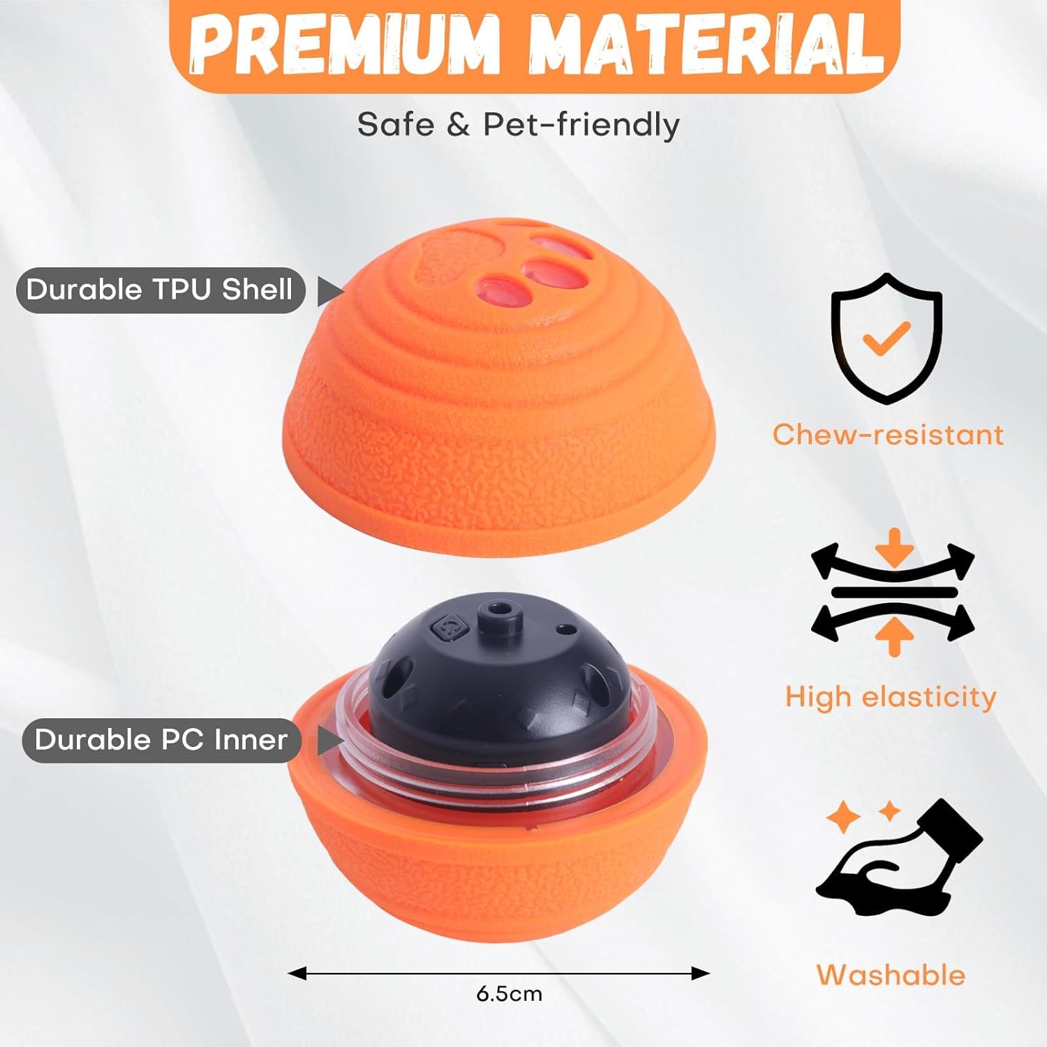 Durable & Pet-Safe Material: Built with high-strength TPU and PC, this interactive dog ball is tough enough to handle chewing from small and medium dogs while remaining lightweight. The textured surface gently massages gums and supports dental health during play.