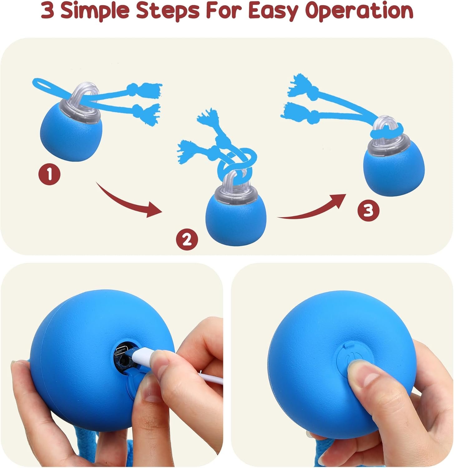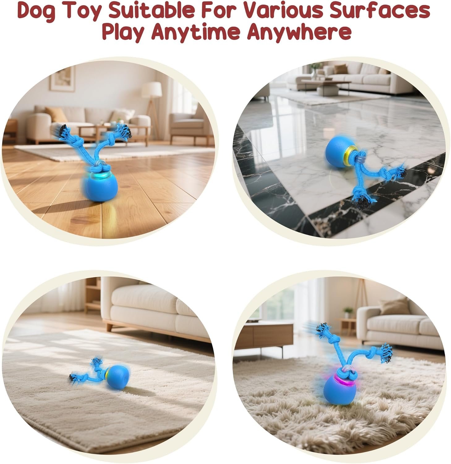 【Thoughtful Sound Settings】This automatic dog toy features a unique sound function that mimics dog barking, further capturing your pet’s attention. The sound can be easily turned on or off—simply press the red light twice to turn it off—allowing you to adjust it as needed without worrying about noise.