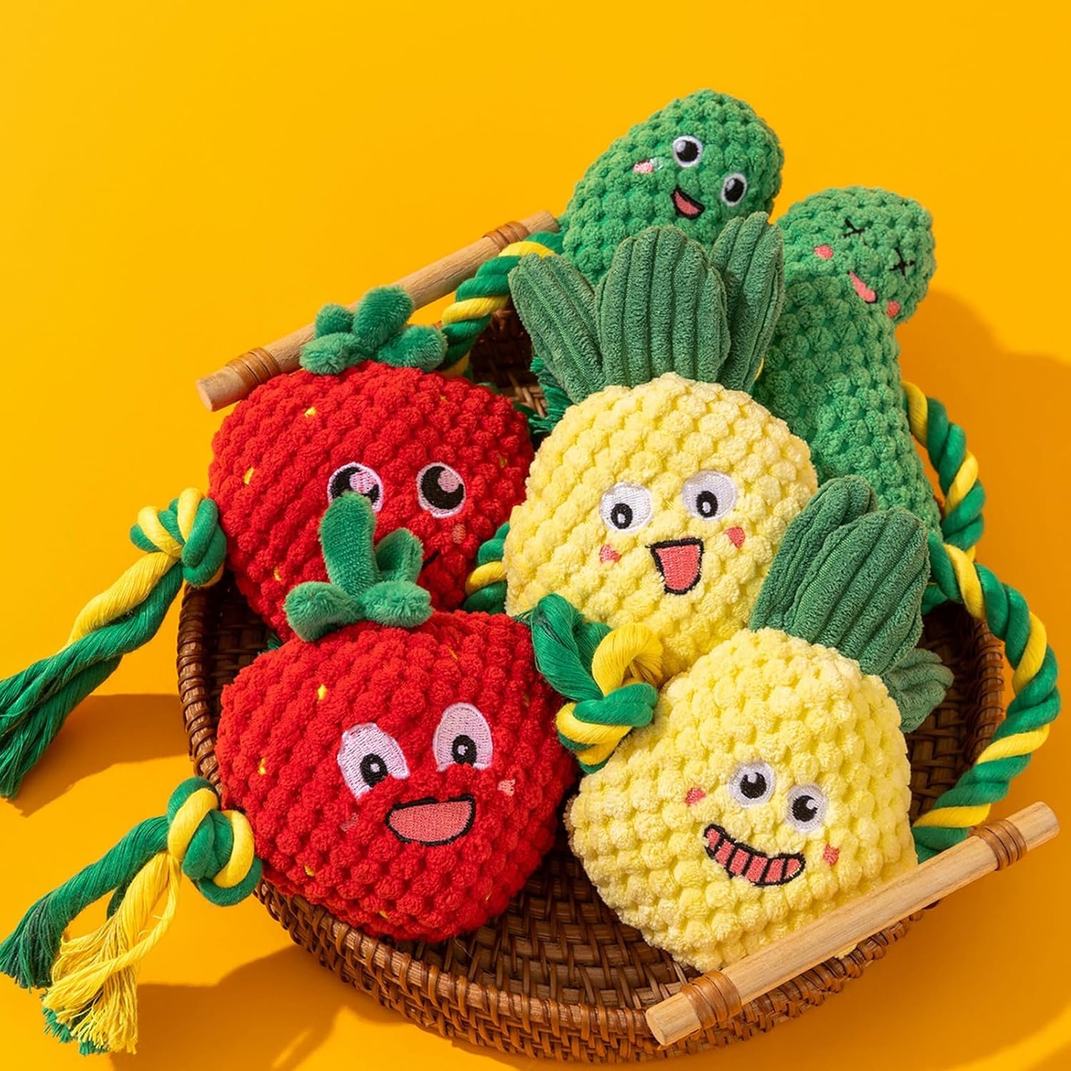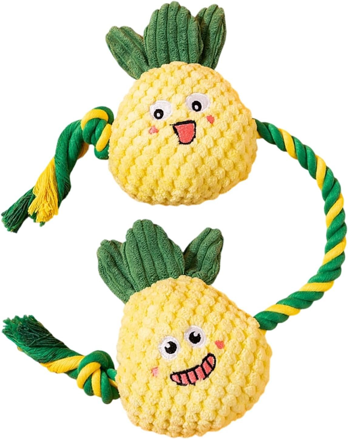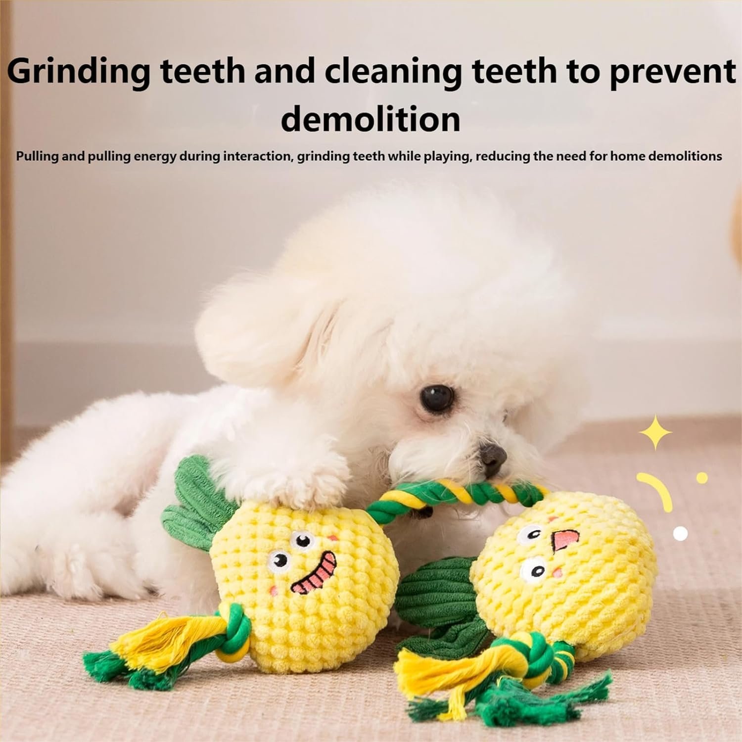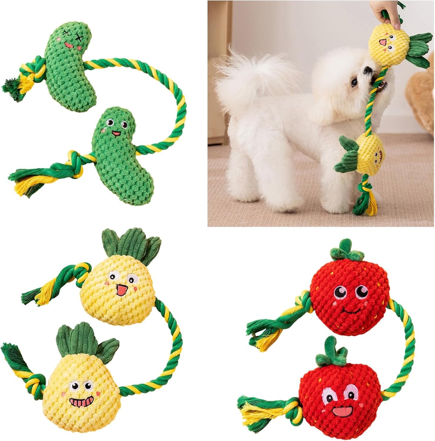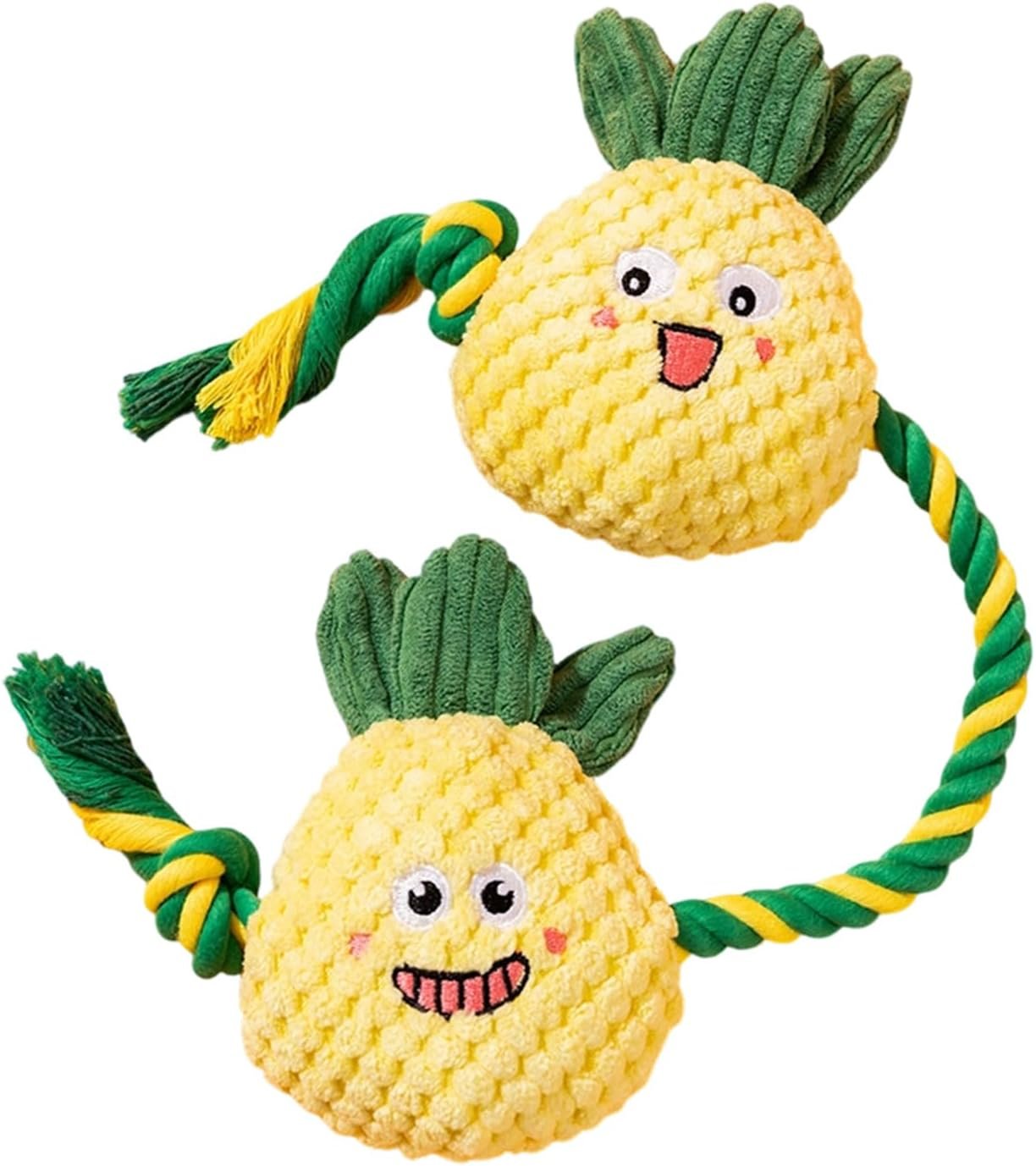 Interactive Squeaky Plush Dog Rope Toy for Pull Play Fruit Design Safe Squeaky Cotton for Pet Bonding Entertainment Dog Toy