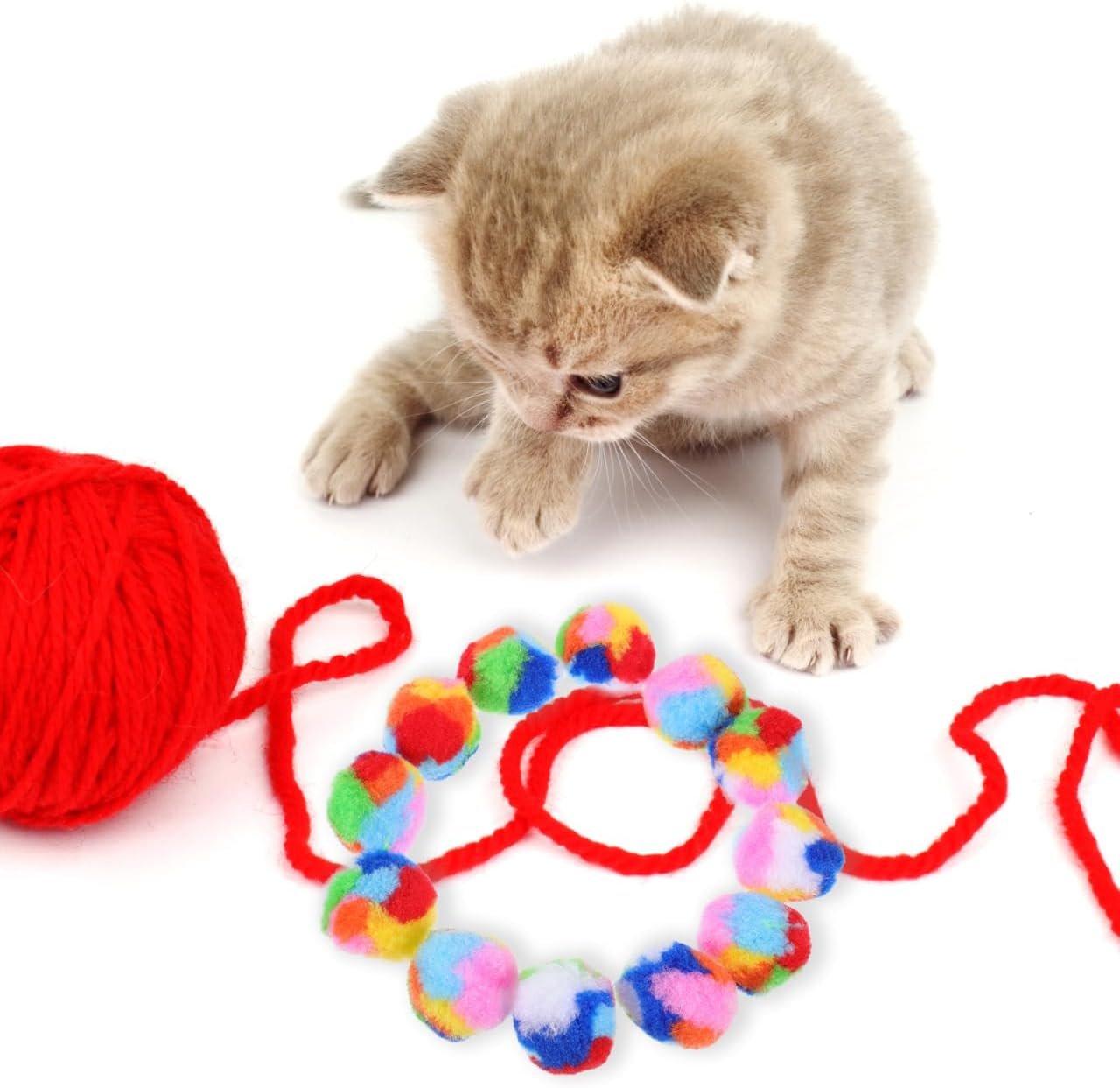 Soft and Comfortable Material: Made from plush yarn, these rainbow cat balls provide a gentle and enjoyable texture for your cat to bite, chase, and scratch