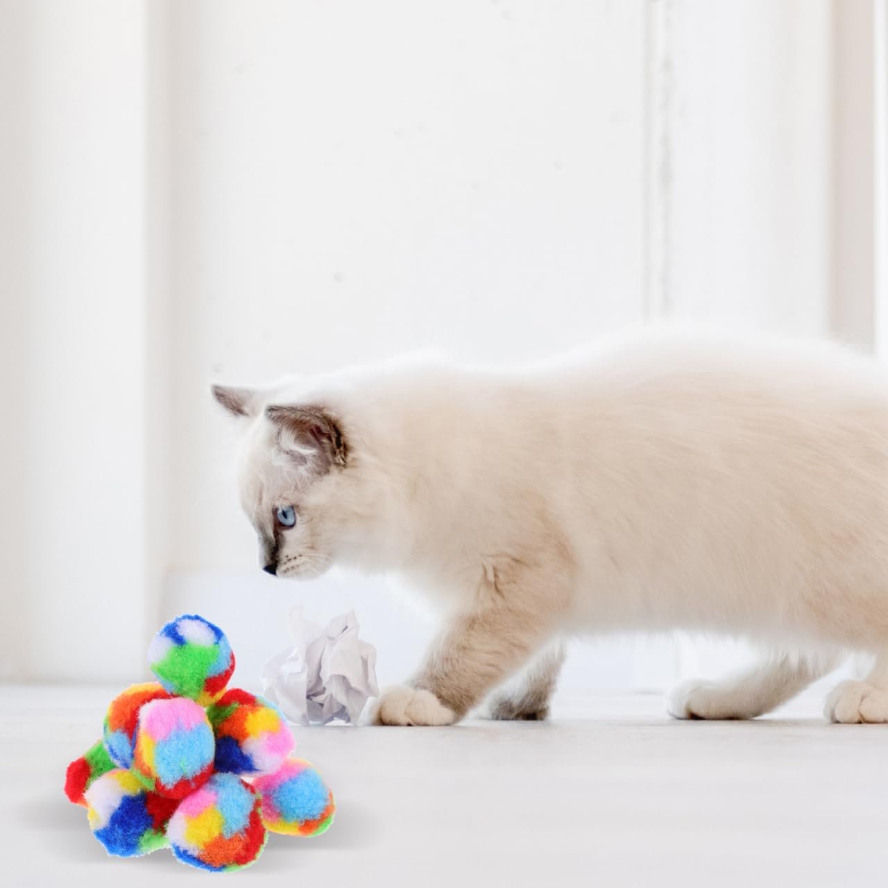 Vibrant Rainbow Colors: Featuring bright and assorted rainbow colors, these cat fuzzy yarn balls attract your pet’s attention effectively, enhancing engagement and making playtime more appealing for indoor cats