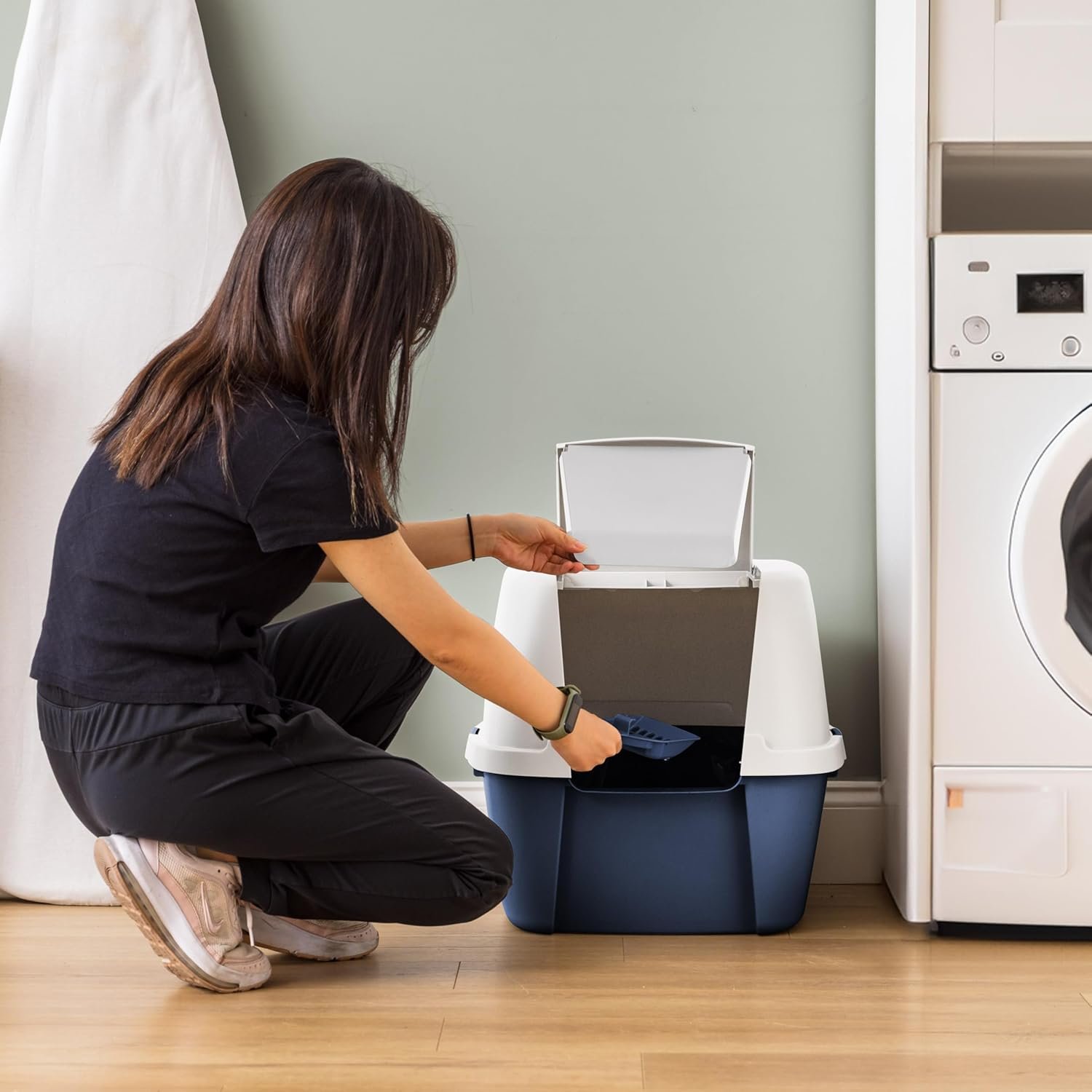 FRONT DOOR FLAP: Features a front door flap that allows easy access for your cat while containing litter, ensuring a cleaner and more hygienic environment.