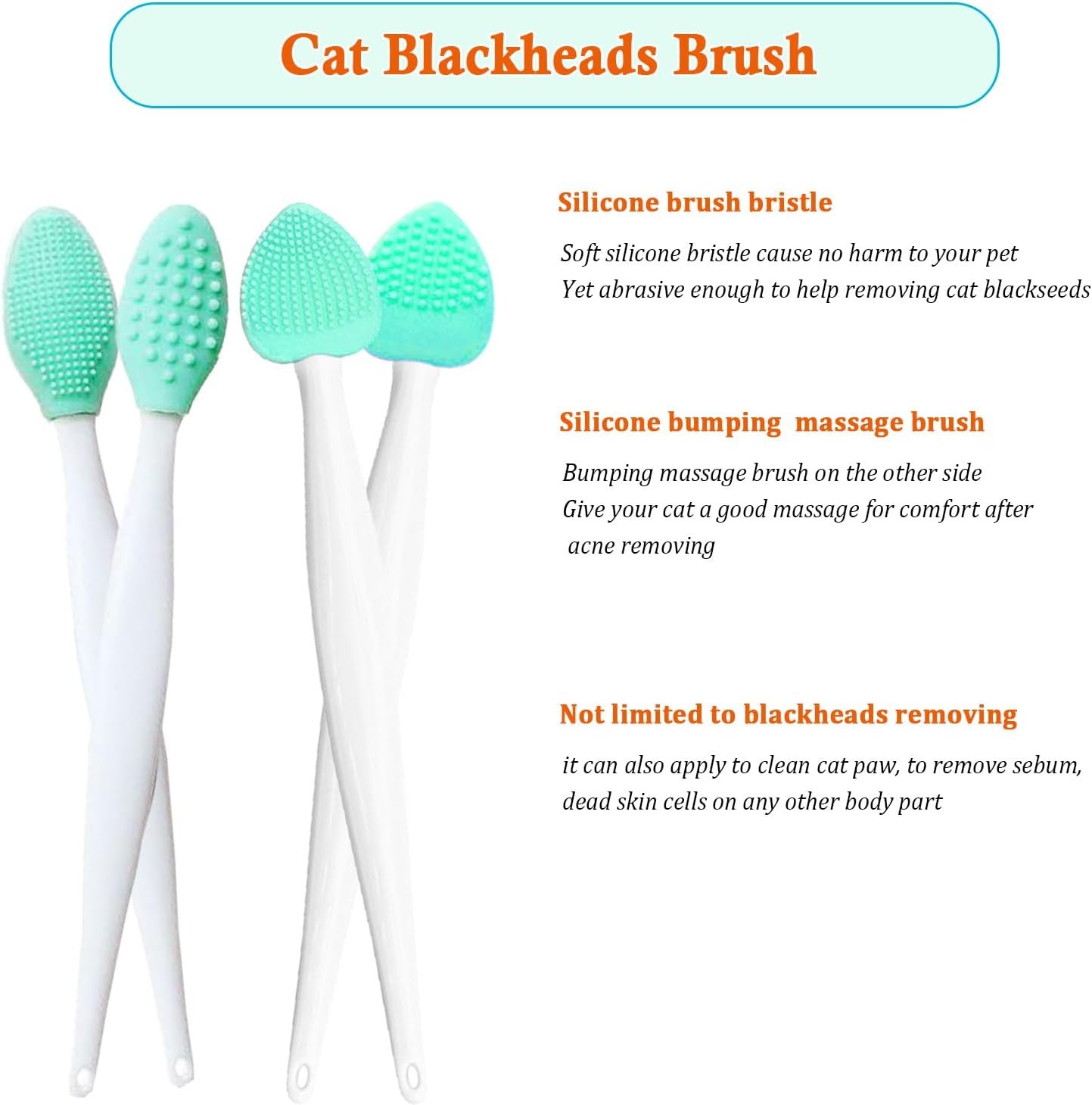 Great Value Cat Chin Cleaning Package—Package comes with four cat acne brushes with two shape design, so you can always choose the one fitting for you the most, and always have spare ones to back you up. We offer 100% SATISFACTION, if you have any question, contact us, we will get a solution for you quite shortly