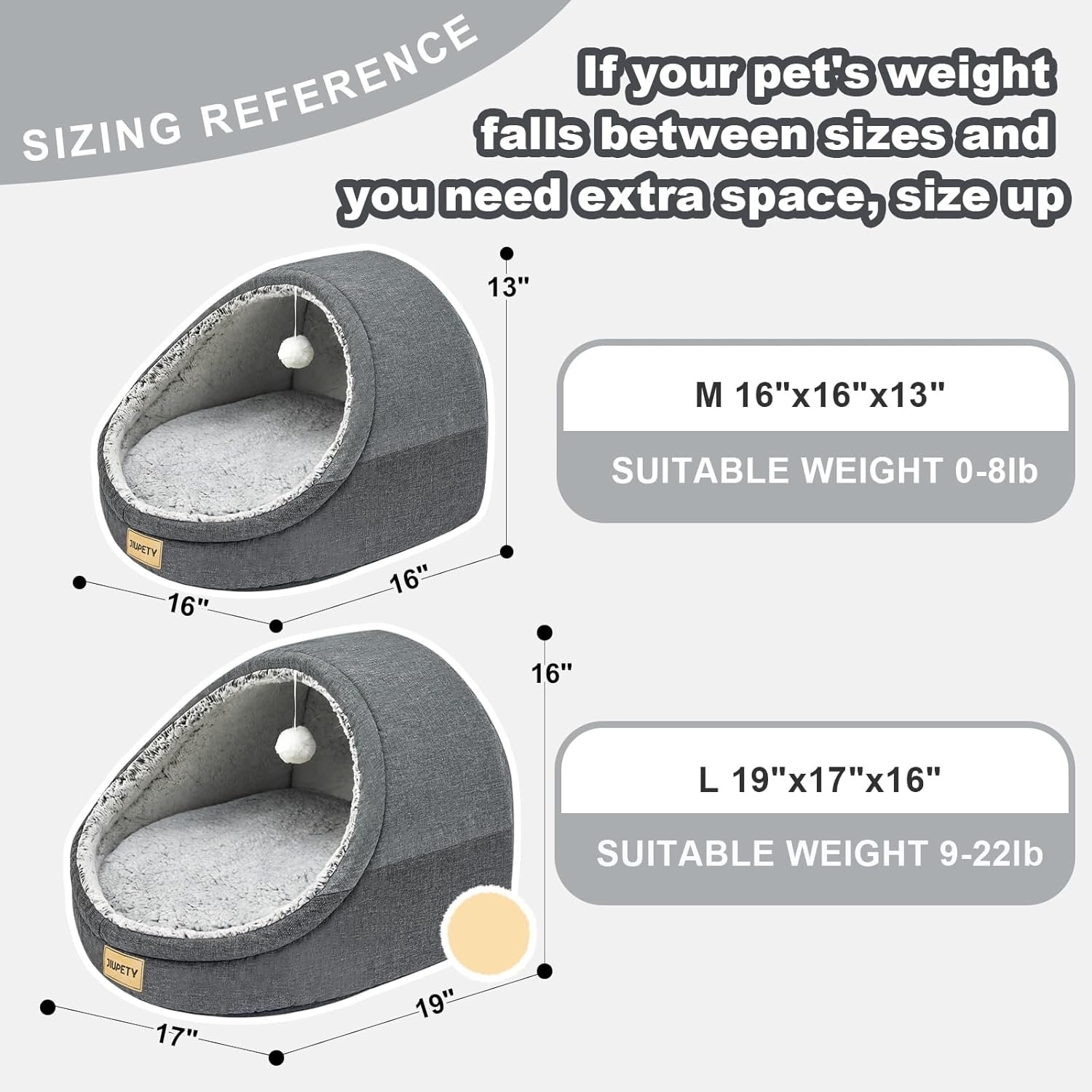 Appropriate Size: Cute cat bed size-M(16″x16″x13″), suitable for cats, kitten, puppy and small dog within 10 lbs. Size-L(19″x17″x16″), suitable for cats, kitten, puppy and small dog within 22 lbs