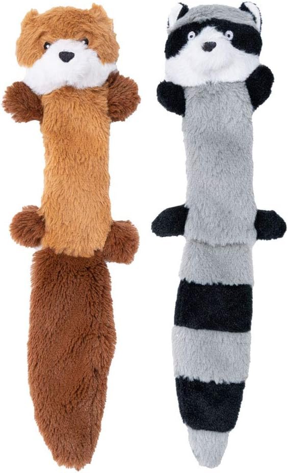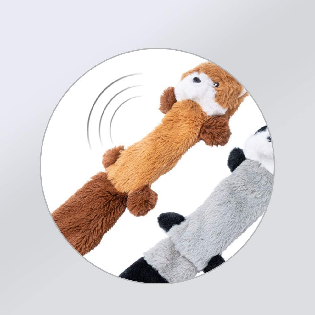 JOYELF Plush Squeaky Dog Toys,No Stuffing Dog Toys for Medium Dogs and Large Dogs, Interactive Dog Toys with Squeaky and Crinkle Paper- Fox and Raccoon
