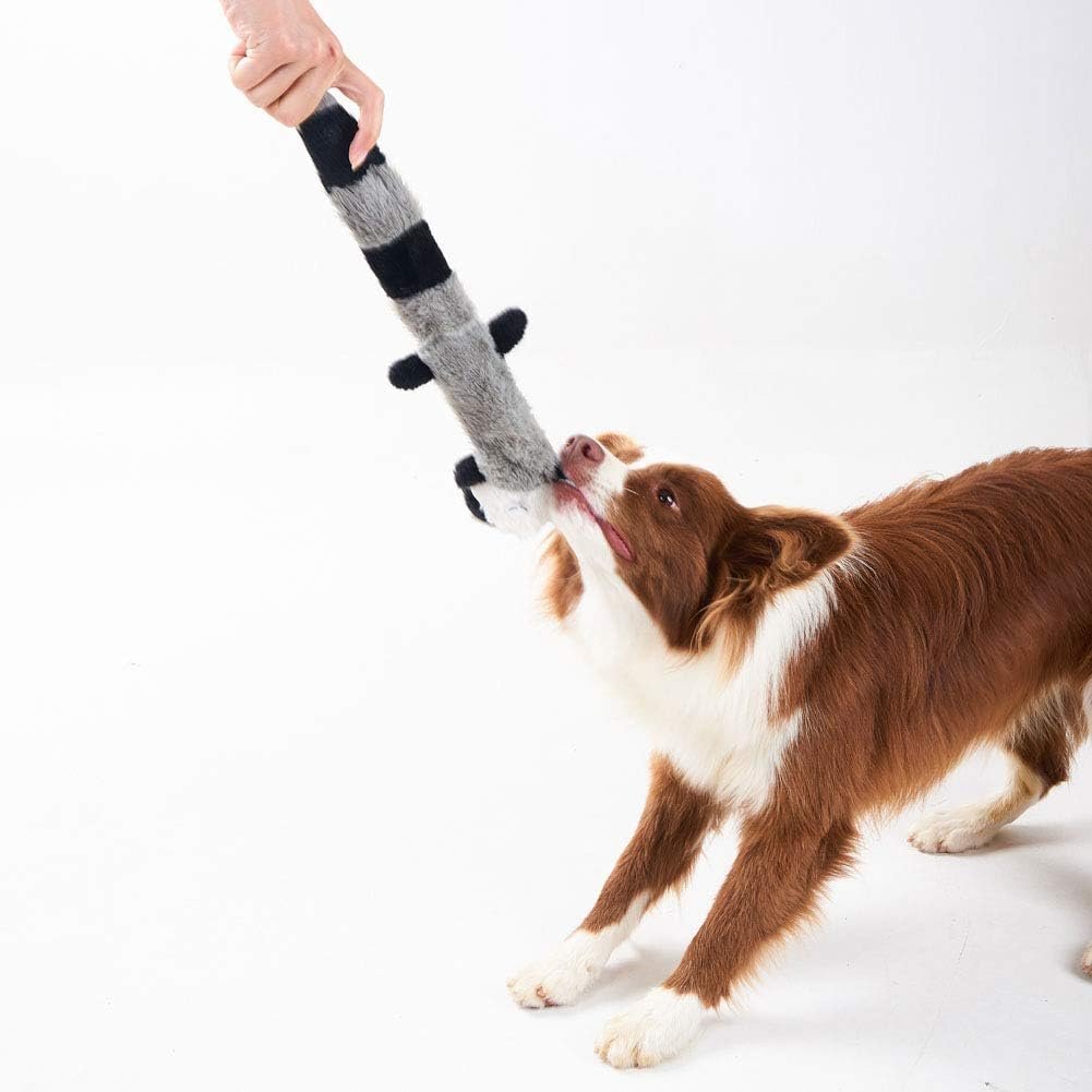 FUNNY TOYS FOR MEDIUM AND LARGE DOGS: Our squeaky dog toys come in a set of two – Fox and Raccoon–and each one will get a great natural response from your dog. The rope dog toys also great for games such as tug of war since their elongated shape can withstand that pressure!