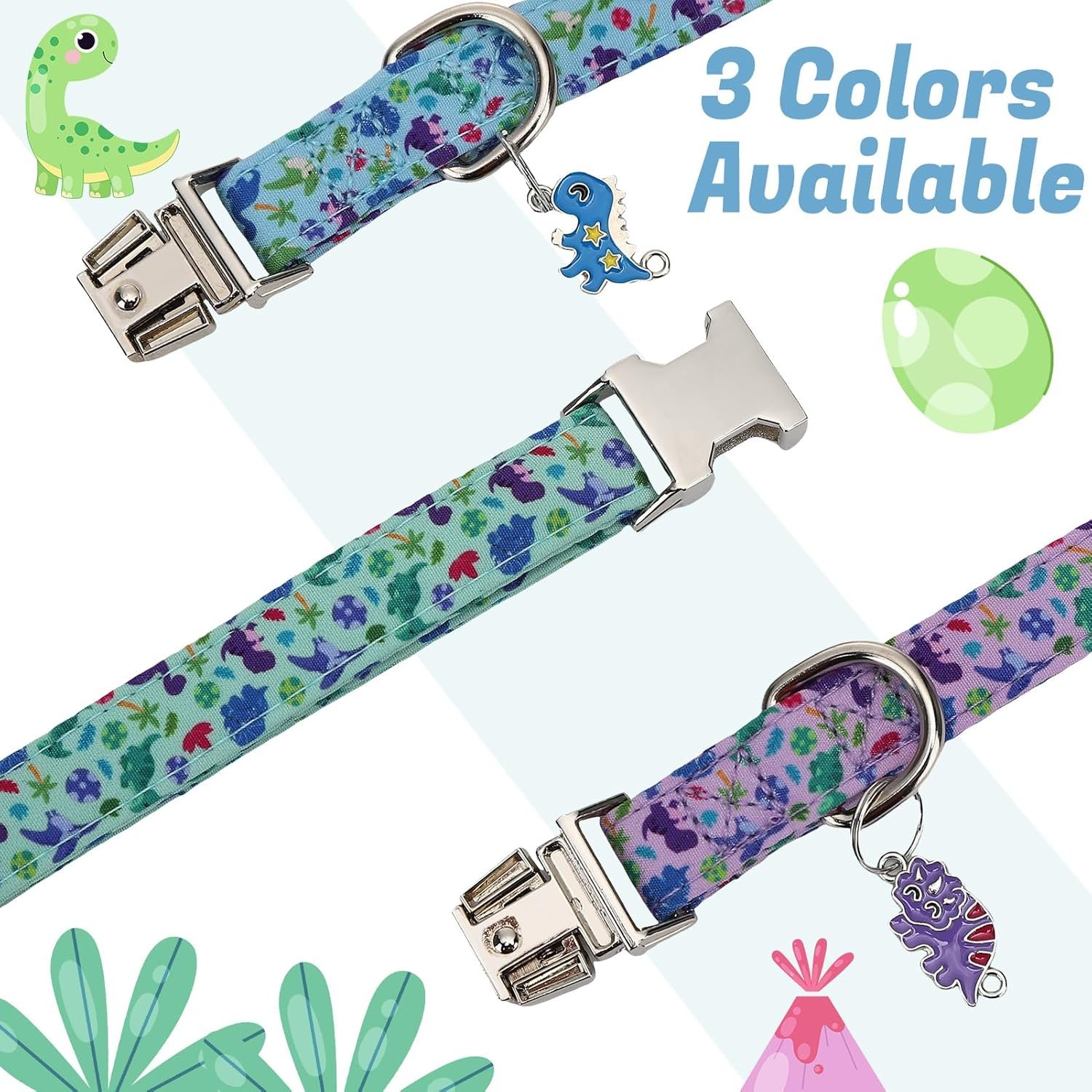 3 Pack Dinosaur Basic Dog Collars with Dinosaur Pendant Adjustable Multicolor Dino3 Pack Dinosaur Basic Dog Collars with Dinosaur Pendant Adjustable Multicolor Dino