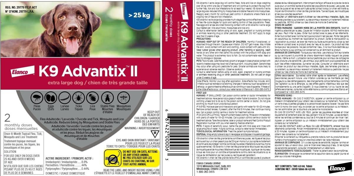 K9 Advantix II Flea and Tick Treatment for Extra Large Dogs weighing over 25 kg (over 55 lbs.)-2 doses