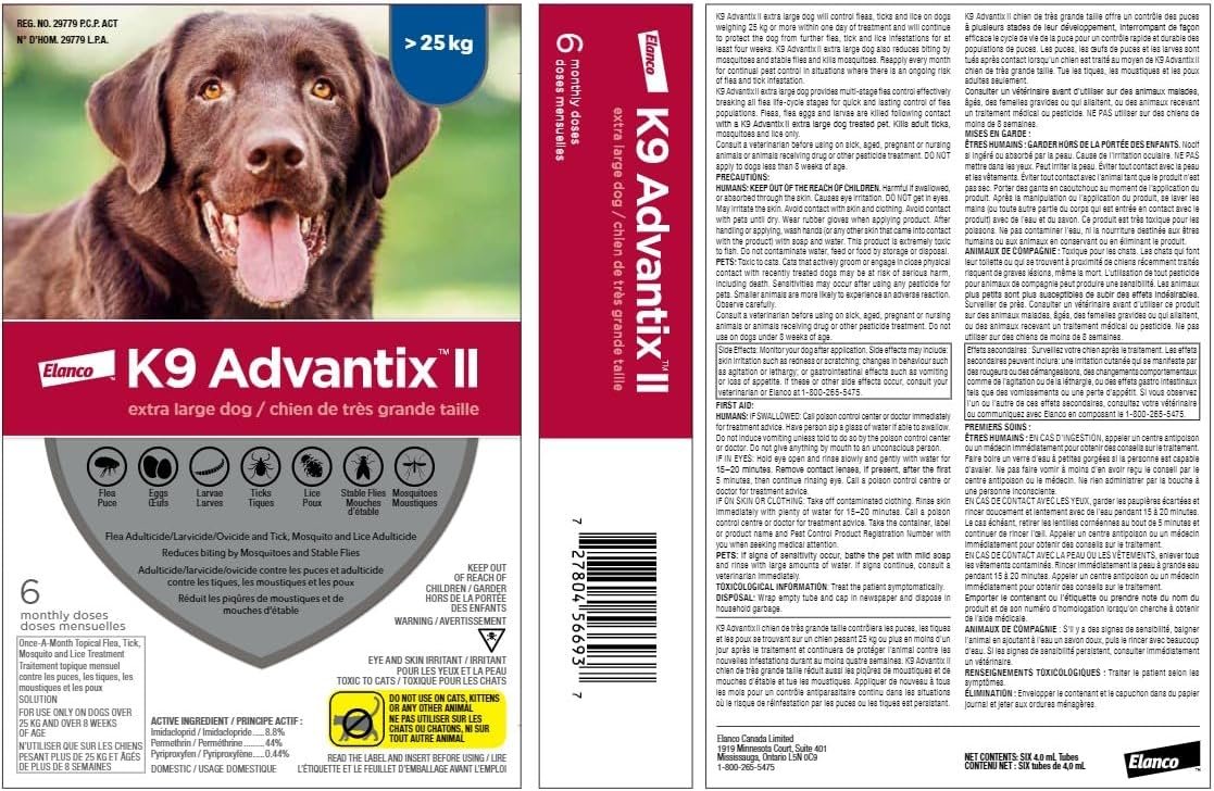 K9 Advantix II Flea and Tick Treatment for Extra Large Dogs weighing over 25 kg (over 55 lbs.)-6 doses
