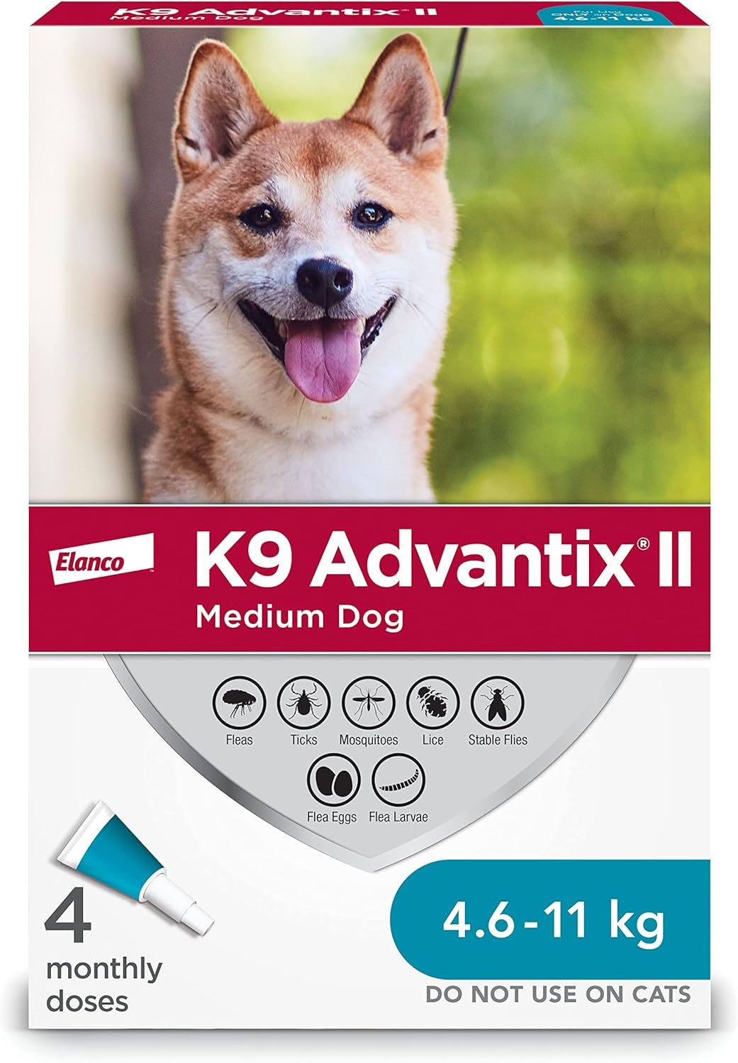 K9 Advantix II Flea and Tick Treatment for Medium Dogs weighing 4.6 kg to 11 kg (10 lbs. to 24 lbs.)-4 doses