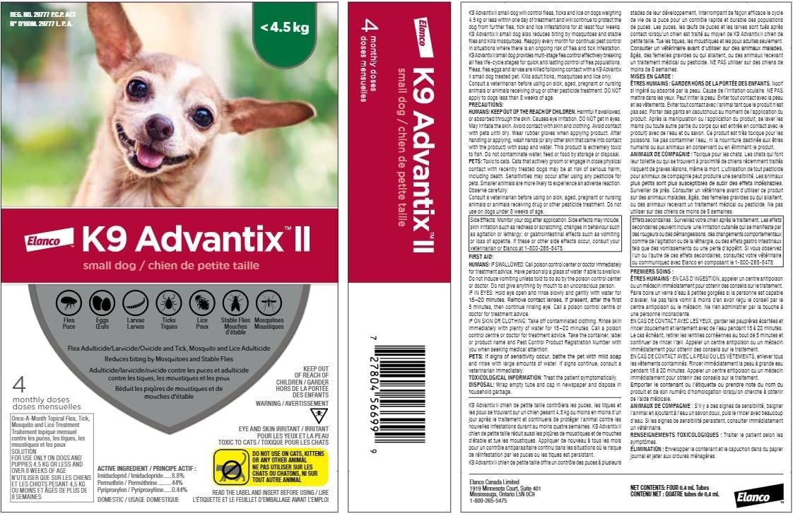 K9 Advantix II Flea and Tick Treatment for Small Dogs weighing less than 4.5 kg (less than 10 lbs.)-4 doses