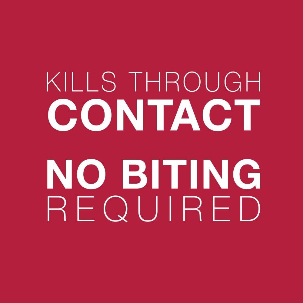 Kills ticks, fleas through contact – no biting required. Kills lice and mosquitoes too!