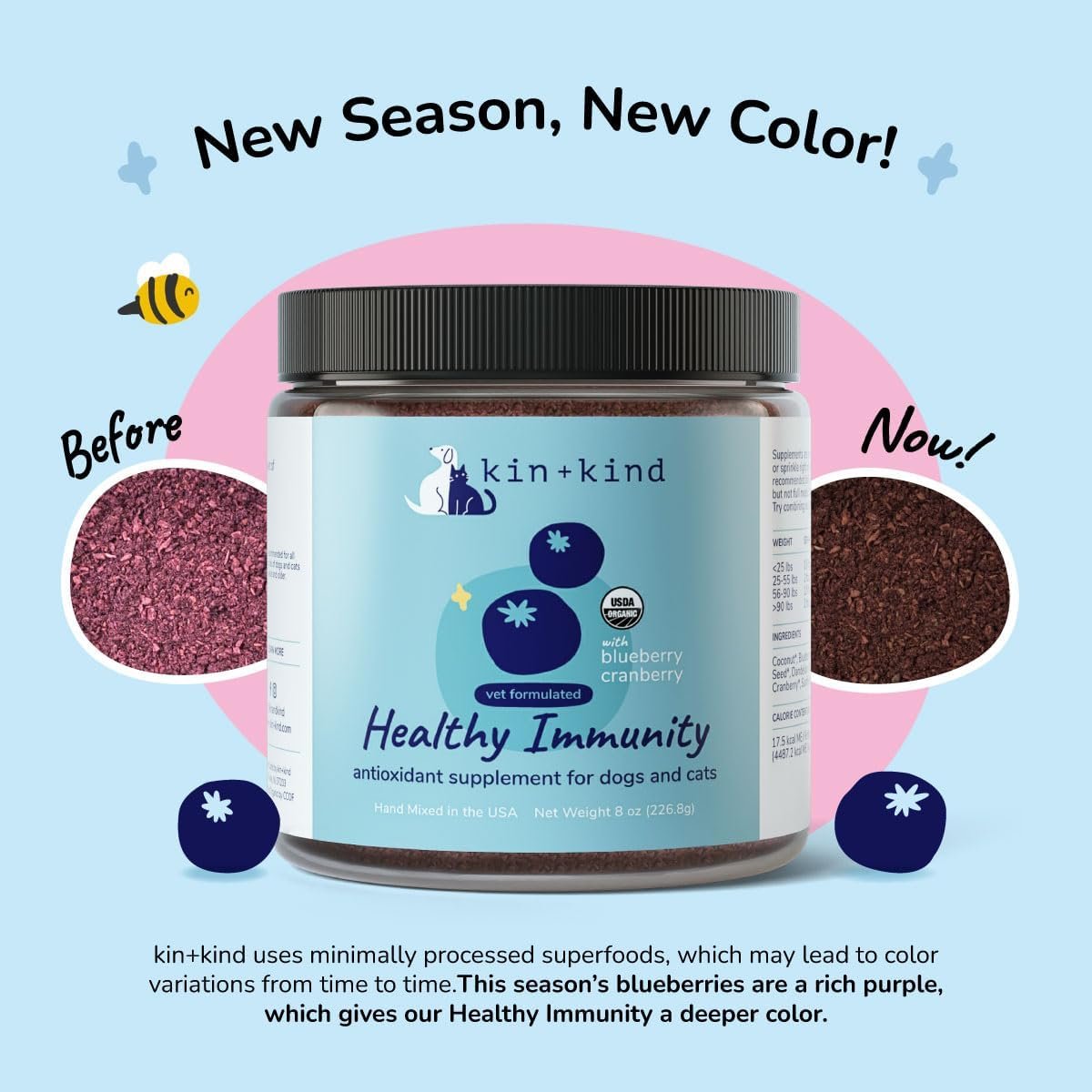 kin+kind Dog Supplement Powder – Supplement for Dogs & Cats for Healthy Immunity – Bladder Support – Natural Formula with Organic Cranberry, Blueberry and Coconut – Made in USA – 113.4 g (Medium)