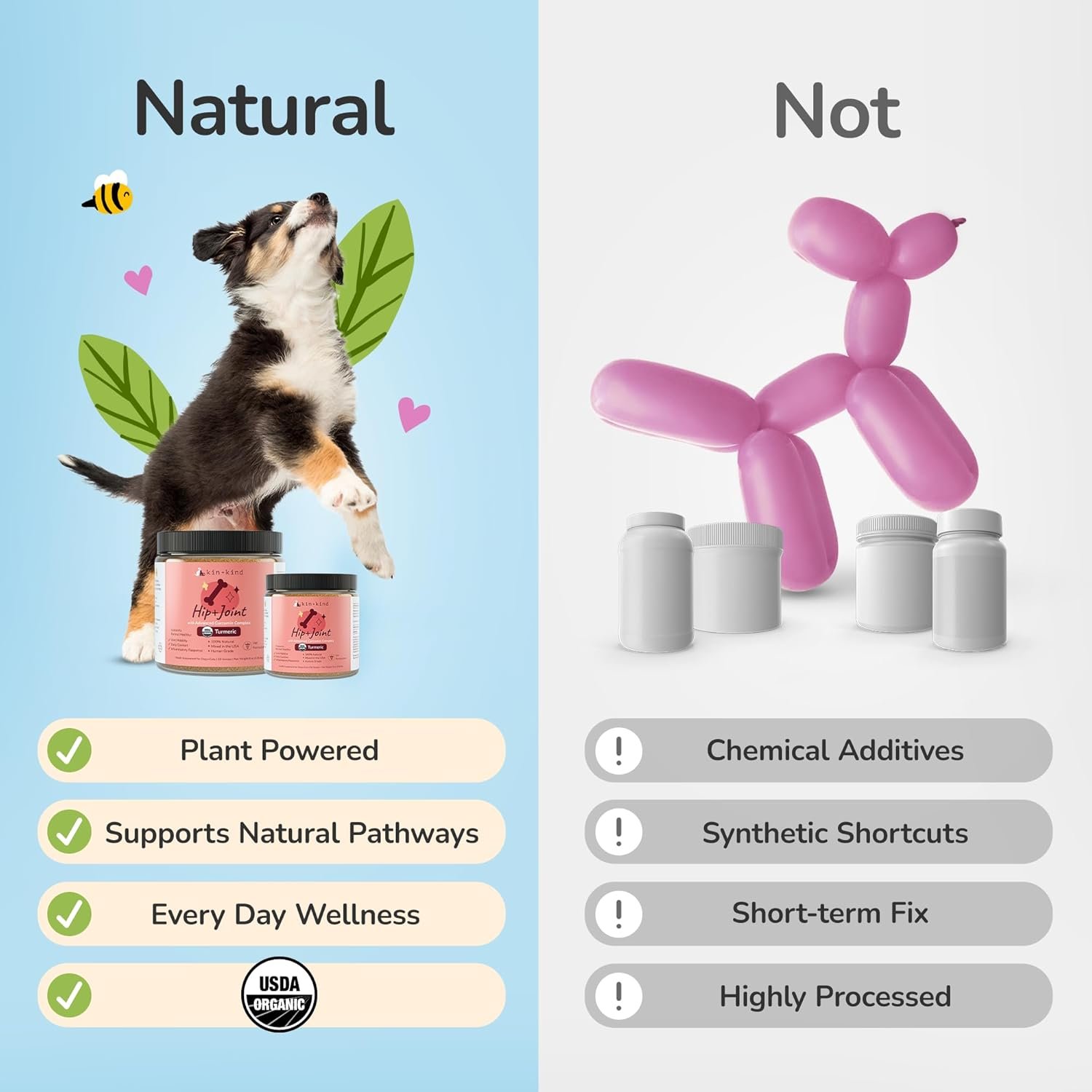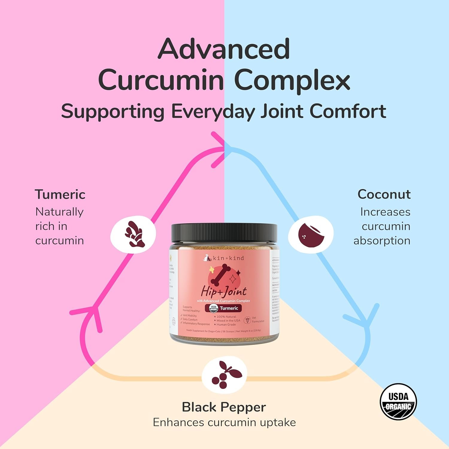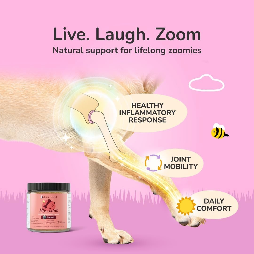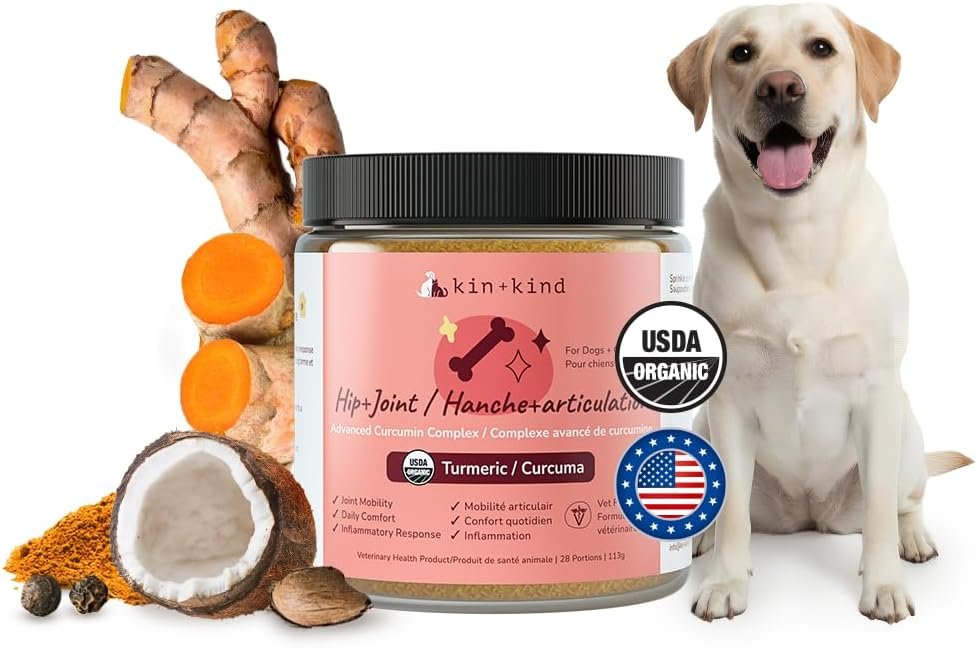 kin+kind Hip+Joint Supplement Dogs & Cats – Vet Formulated Natural Formula with Organic Turmeric, Black Pepper and Coconut – Made in USA – 113.4 g (Medium)