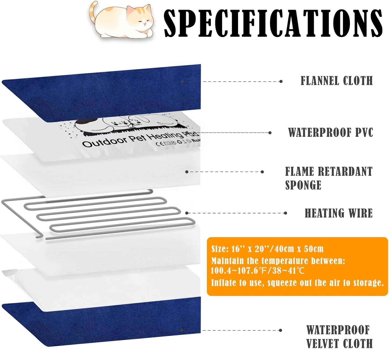 Soft and Comfortable: Our outdoor heating pad for cats is cozy and plush, the outer soft blanket cover is removable and machine washable