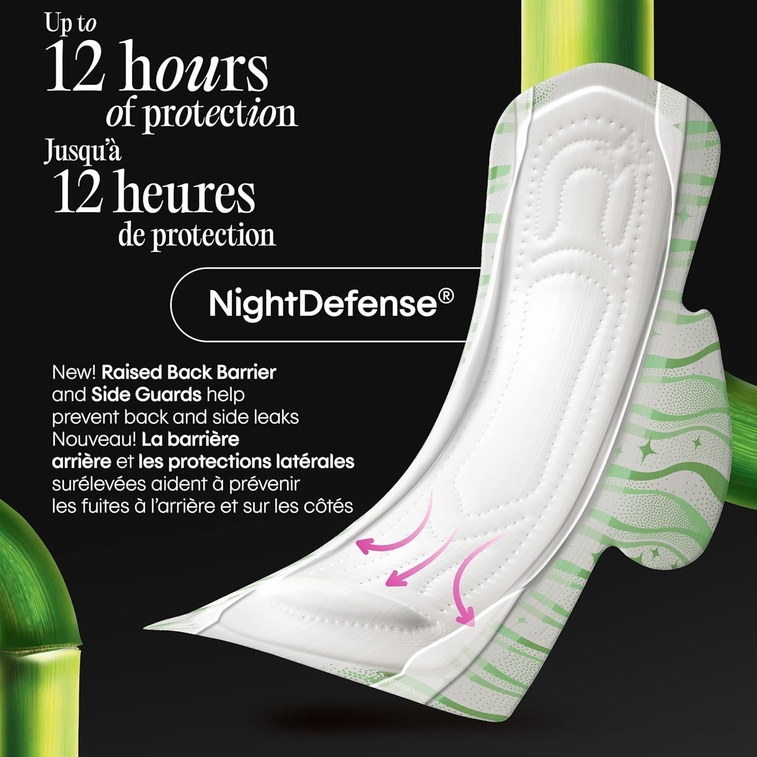 Night Defense: Our overnight pads provide overnight protection with back barrier and side guards to help prevent back and side leaks during sleep