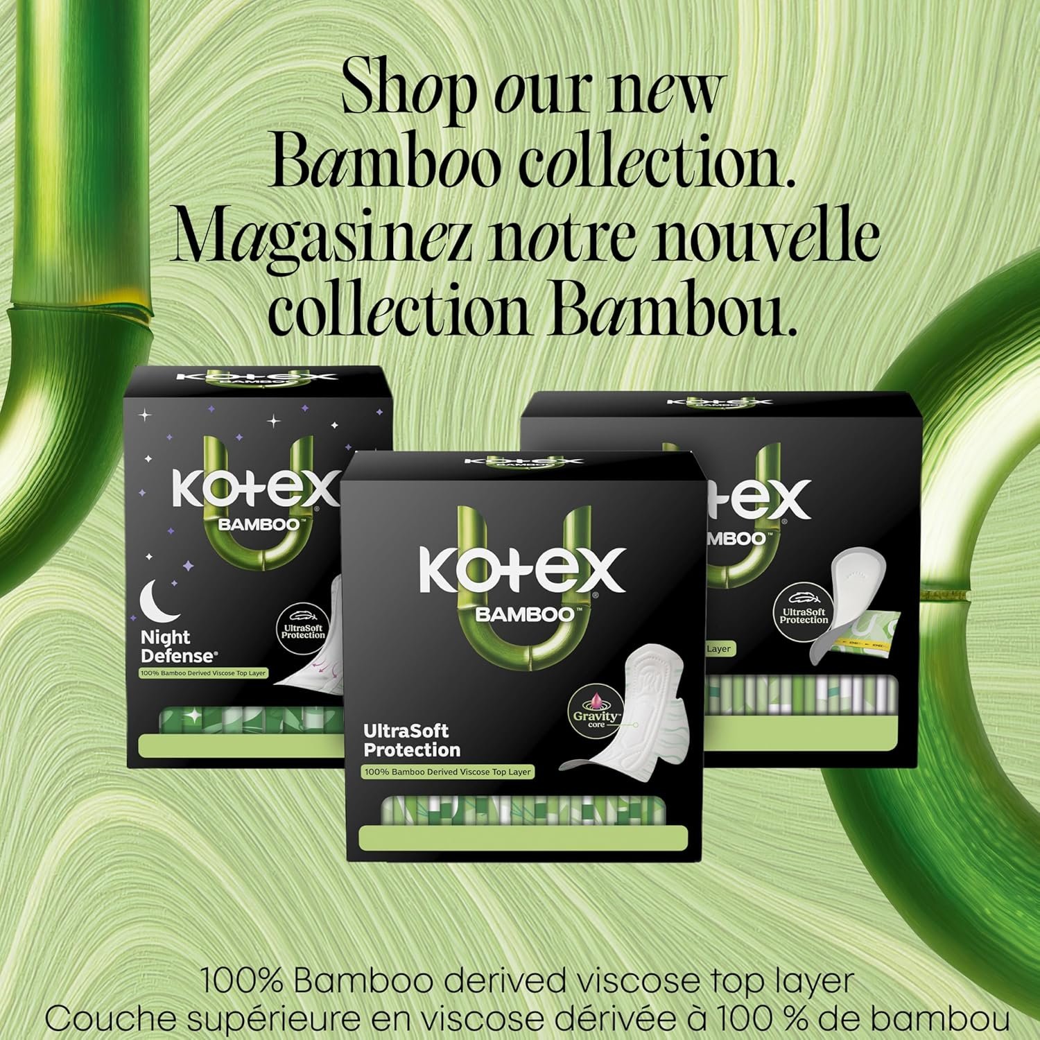 The new Kotex Bamboo Ultra Thin Overnight Pads with wings are designed to change the way you experience overnight period protection. Each pad features a 100% bamboo-derived viscose top layer that is UltraSoft and breathable, providing comfort throughout the night. The 5x System with LeakShield Protection delivers breathability, odor control, dryness, fit, and leakage protection for up to 100% Leak Free Comfort. Night Defense technology with a back barrier and side guards helps prevent leaks, while the Gravity Core pulls fluid to the center of the pad to help you feel clean and dry. These pads are made without fragrance, are elemental chlorine free, and pesticide free. Each pad is individually wrapped for convenience and easy access, even on-the-go. Packaging may vary from images shown.