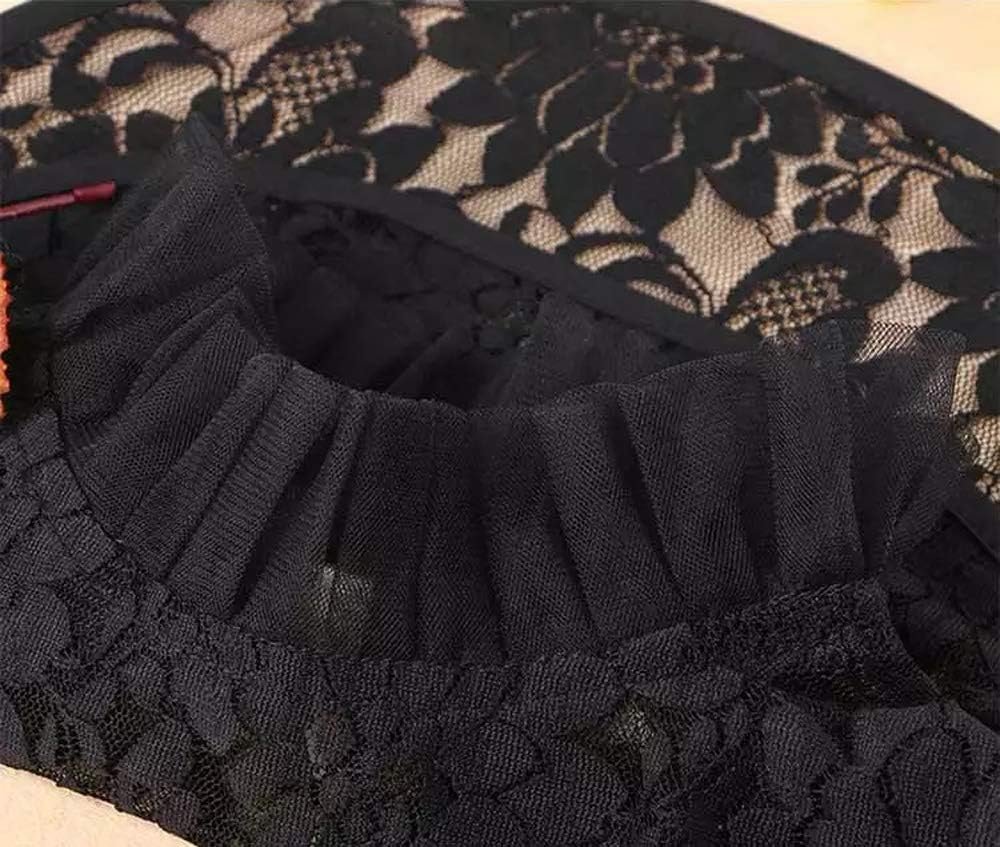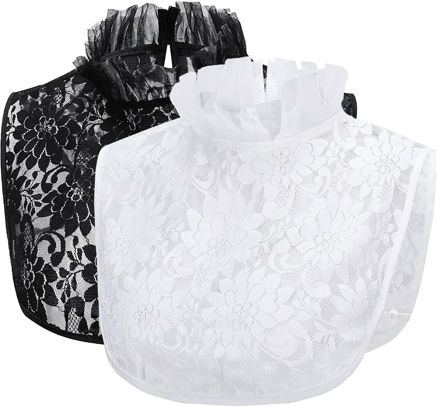 Lace Fake Collars Detachable Dickey Collars with Adjustable Straps for Blouse, Wrist Cuffs (Lace A B+W)
