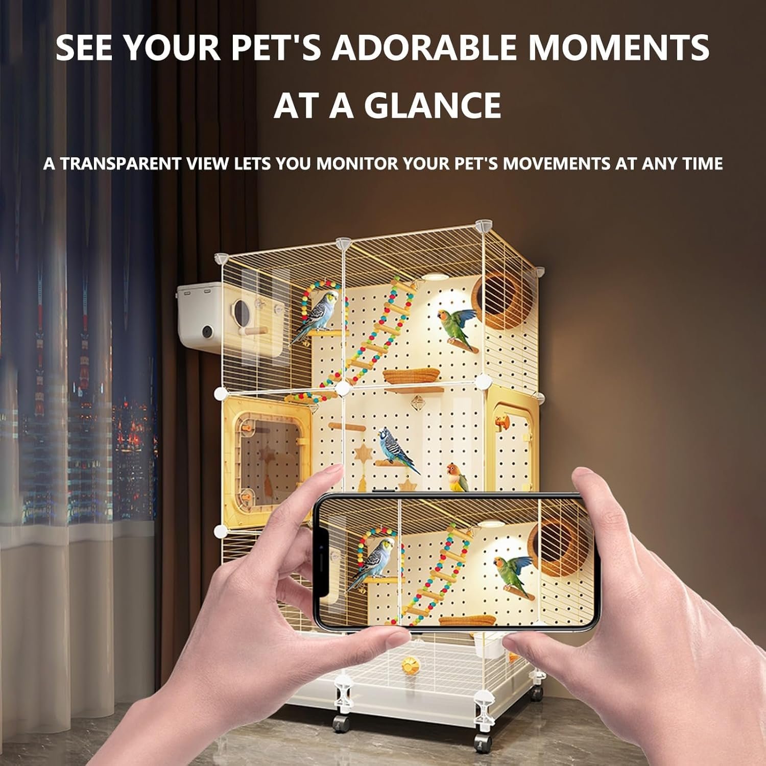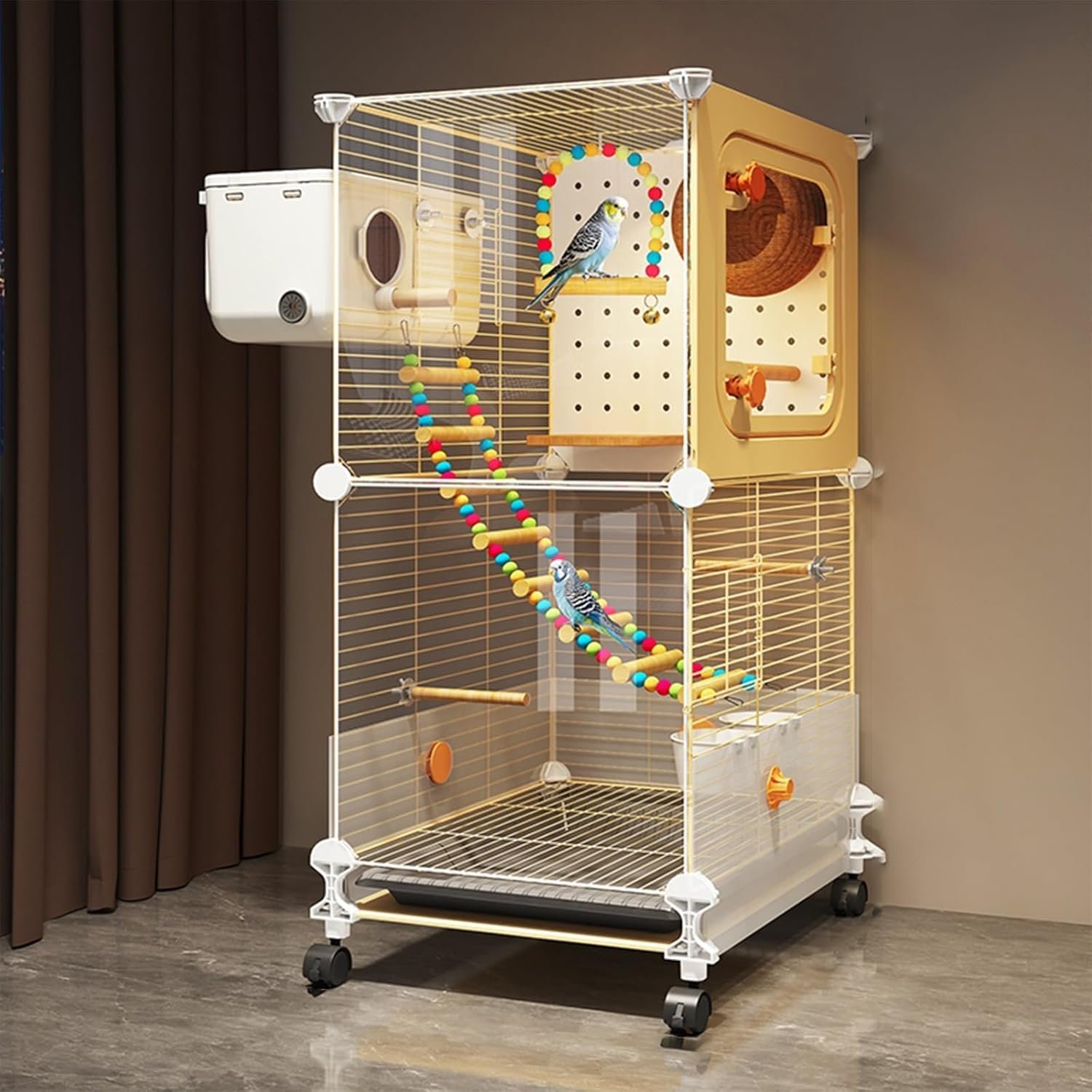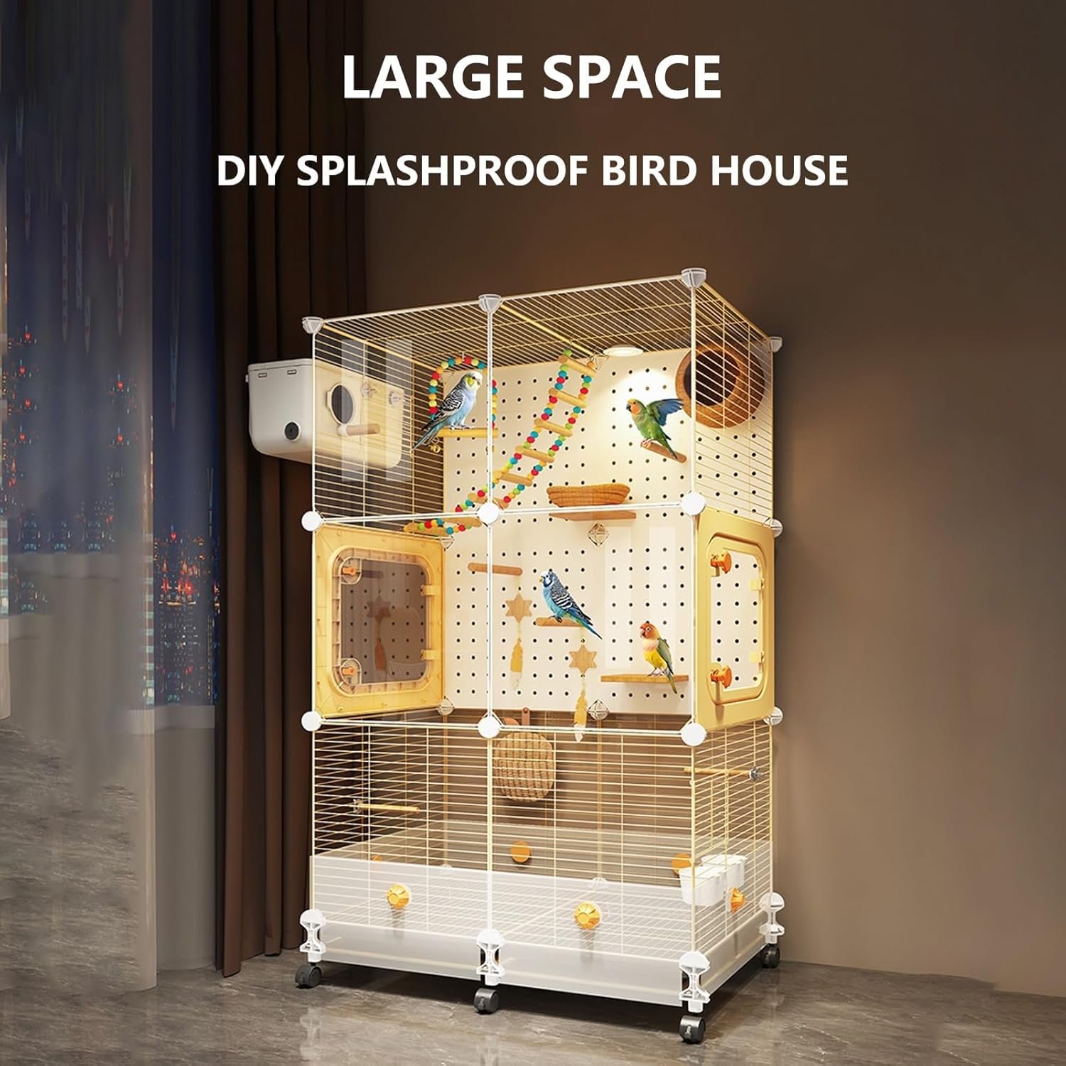 【Premium Bird Cage】Acrylic Viewing Doors & Stainless Steel Mesh – Blocks water splashes from bathing conures/flapping budgies! Wipe acrylic surfaces streak-free while stainless mesh resists rust. 360° visibility lets you watch cockatiels’ antics without cleaning hassles