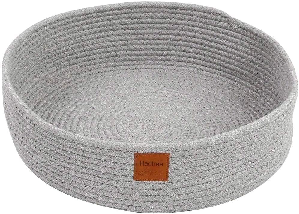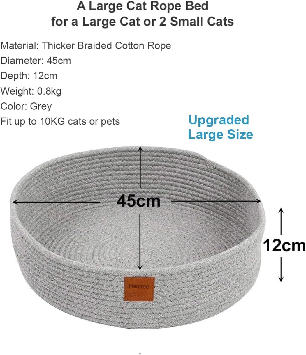 Large Cat Bed Basket Round Cotton Rope Woven – Calming Cat Rope Bed Sleep Surface 45cm(18 inches),Cozy Scratching Indoor Cat Bed for a Large Cat or 2 Small Cats,Fit up to 10KG Pets,Washable,Grey
