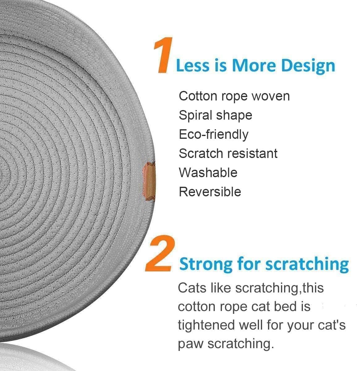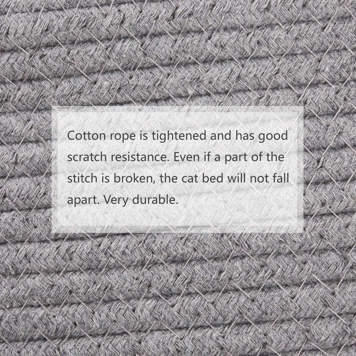 Scratch Resistant: This large cat bed is carefully woven into a spiral shape. Cotton rope of the cat bed is tightened well and has good scratch resistance. Even if a part of the stitch is broken, the cat bed will not loosen. Very durable. So this cat bed can be used to play scratching for your cats before a sweet sleep.