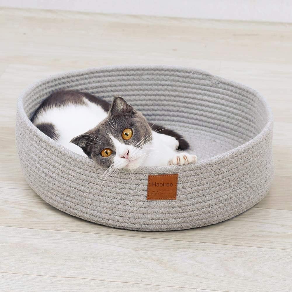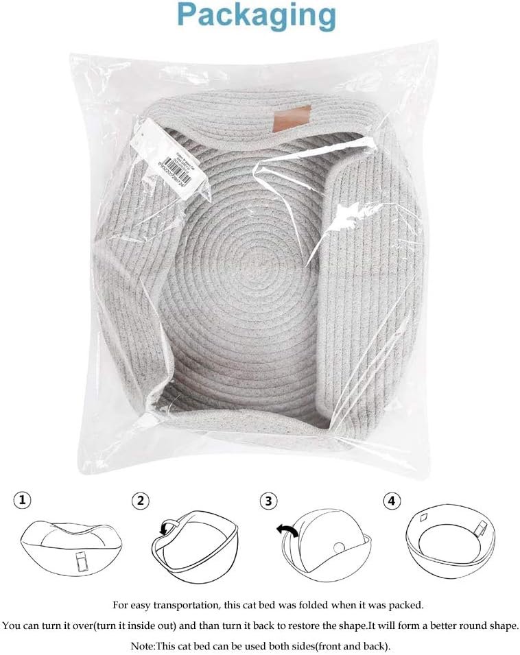 100% Cotton: Woven with thicker braided cotton rope, this cat rope bed is cozy and firm, improving your cat’s sleeping quality and keep the pet warm. The cat bed contains no formaldehyde, no smell, eco-friendly. This cat bed can be washed by hand easily.