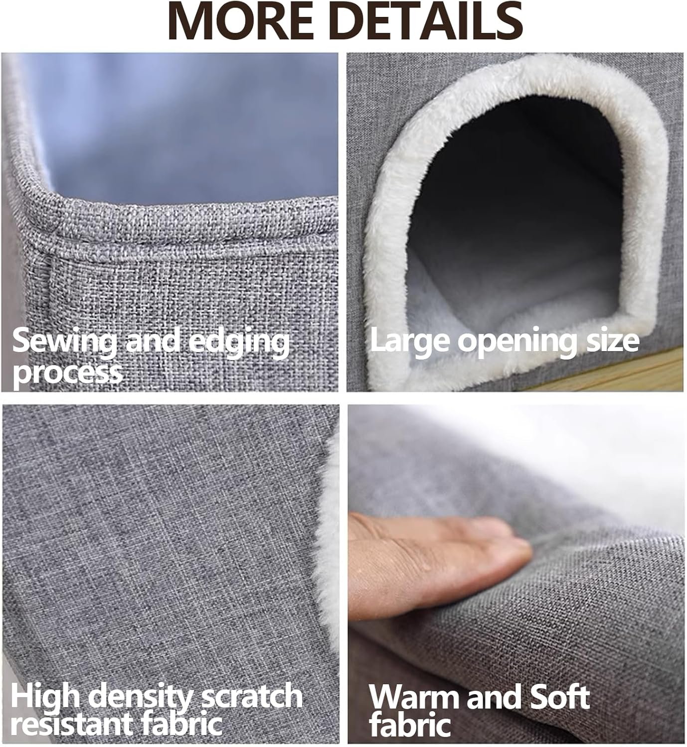 Solid-Color Designs Our solid-color designs, with their emphasis on simplicity, captivate the hearts of most pets, earning them a top spot as a favorite among all. Dual-temperature pads Dual-temperature pads (hot & cold)are thoughtfully designed to enhanceyour cat’s comfort level. Collapsible cat house The collapsible cat nest offers ease in opening, storage, and portability, serving as a handy temporary shelter for cats on the move. It’s removable, functional, and perfect for indoor use. Dimensions 24inches * 16inches * 14 inches Material Lines, Plush Fabric,Premium Cozy Sherpa
