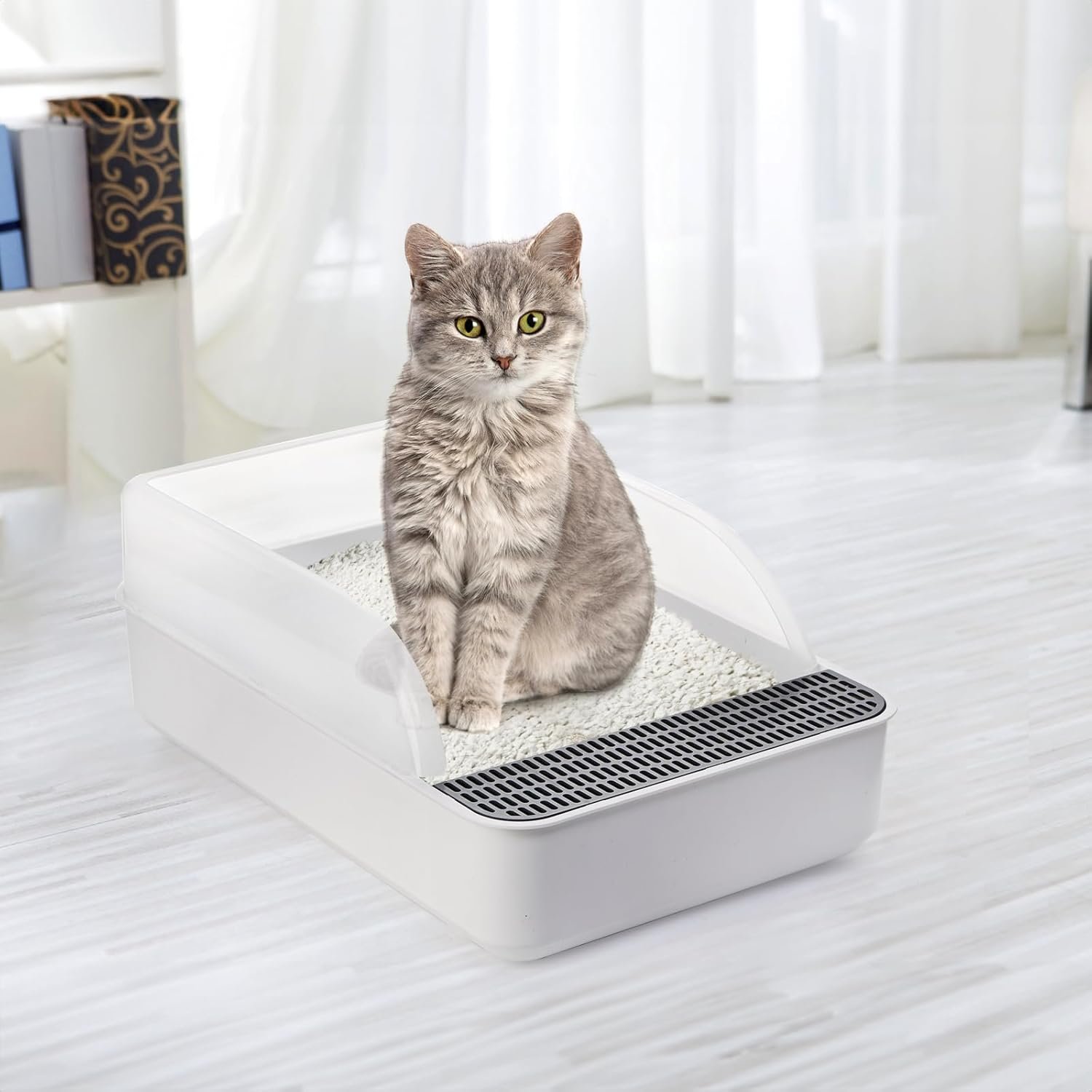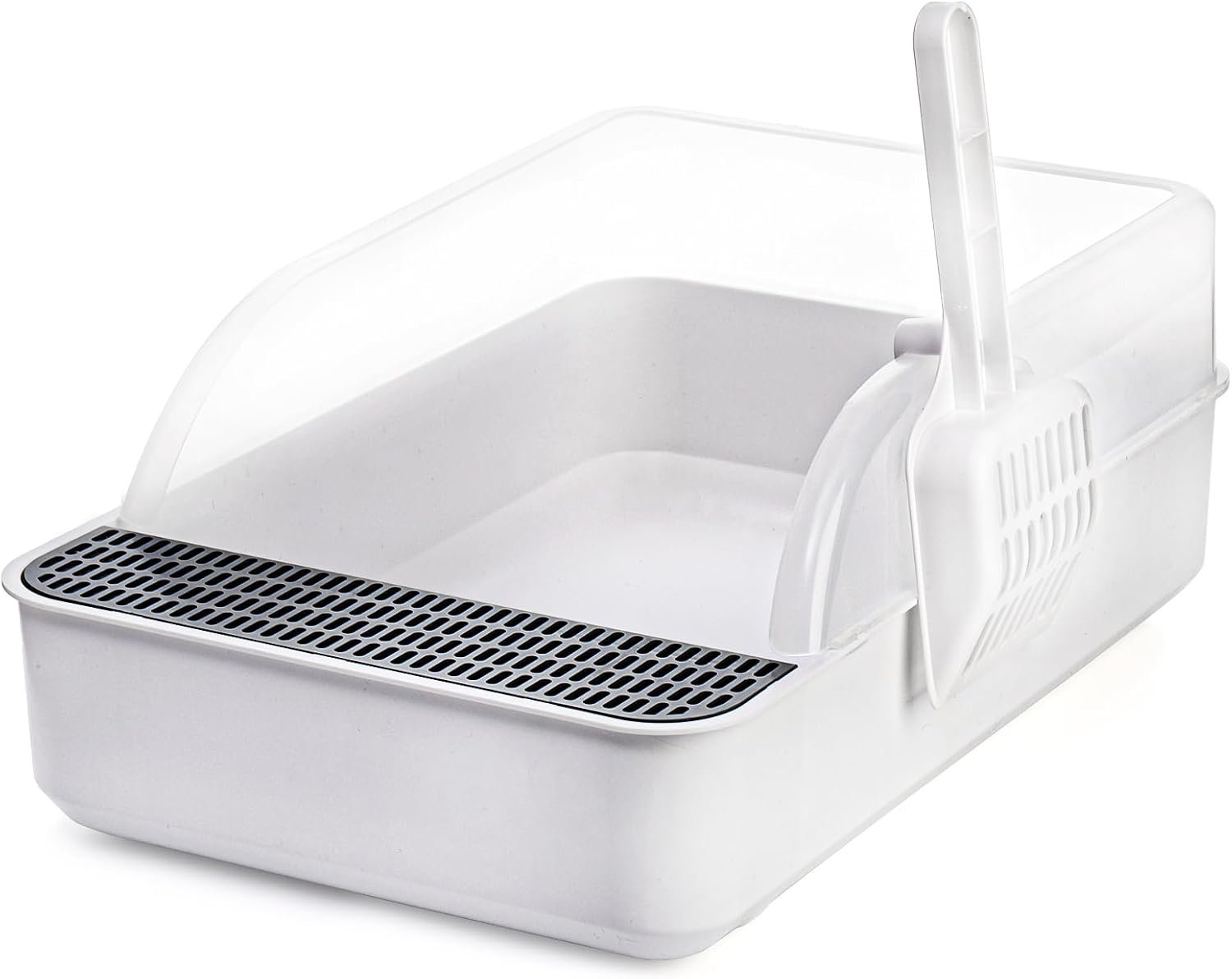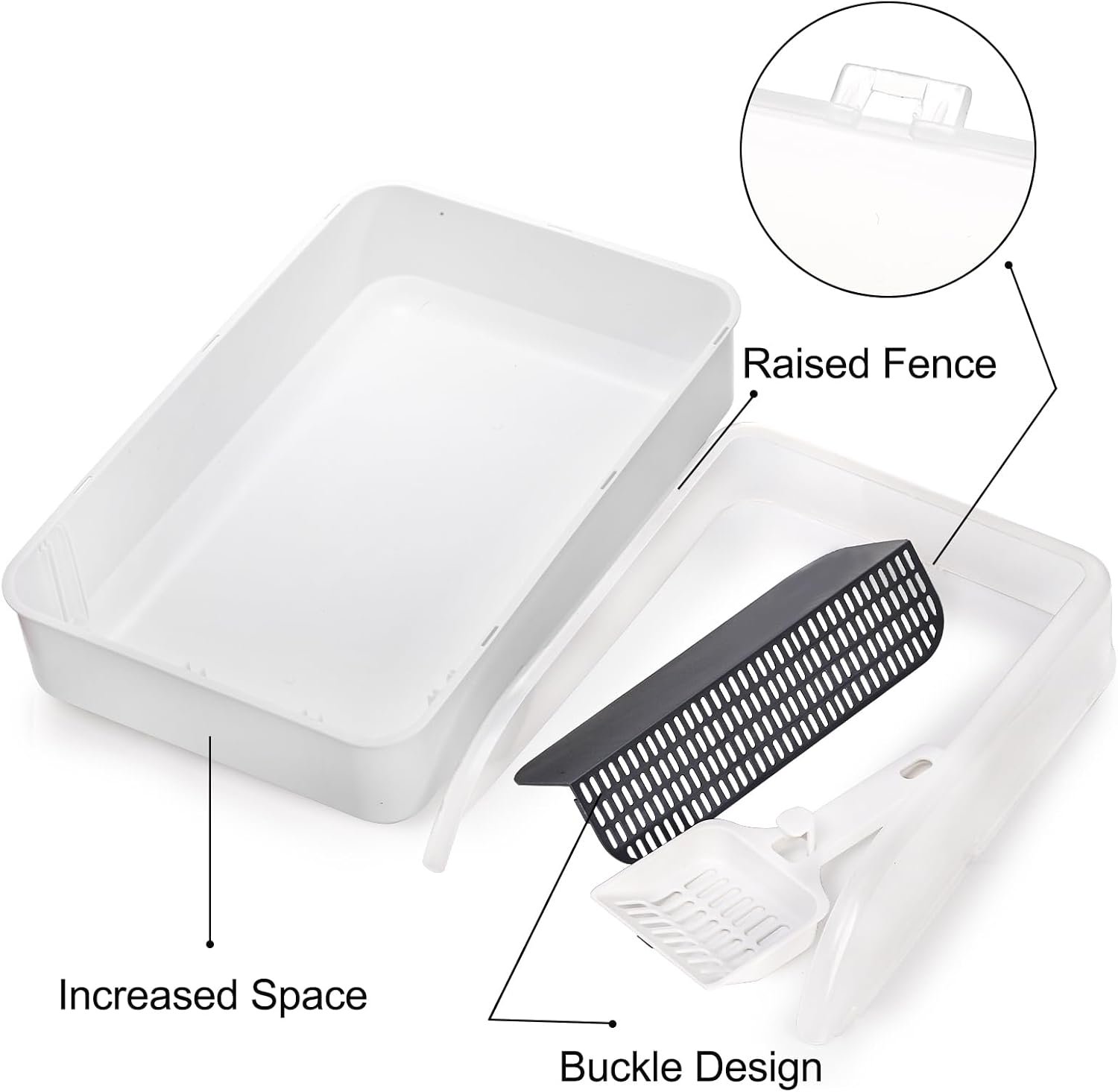 Lawei Open Top Cat Litter Box with High Side, Anti-Splashing Cats Litter Pan with with Litter Sifting Scoop