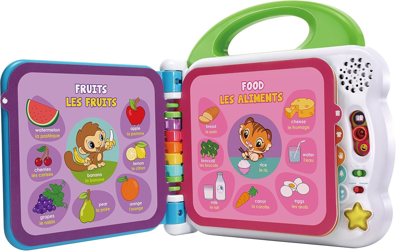 This bilingual learning book introduces words and more in both English and French for an interactive experience toddlers will love