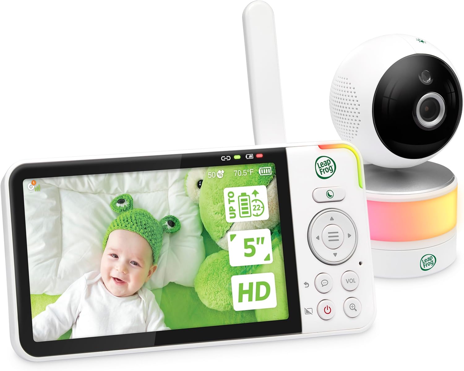 Watch over your little one on the 5-inch, 720p High-Definition LCD Parent Unit Display with the Leapfrog LF915HD video baby monitor. View rooms from top to bottom with the 152-degree vertical tilt angle and from side to side with the 360-degree horizontal pan capability. Magnify details up to eight times their original size with the crisp digital zoom range and monitor room temperature and humidity levels directly from the Parent Unit Display. Plus, see your baby as clear as day, even in ultralow light, thanks to the automatic infrared Color Night Vision.