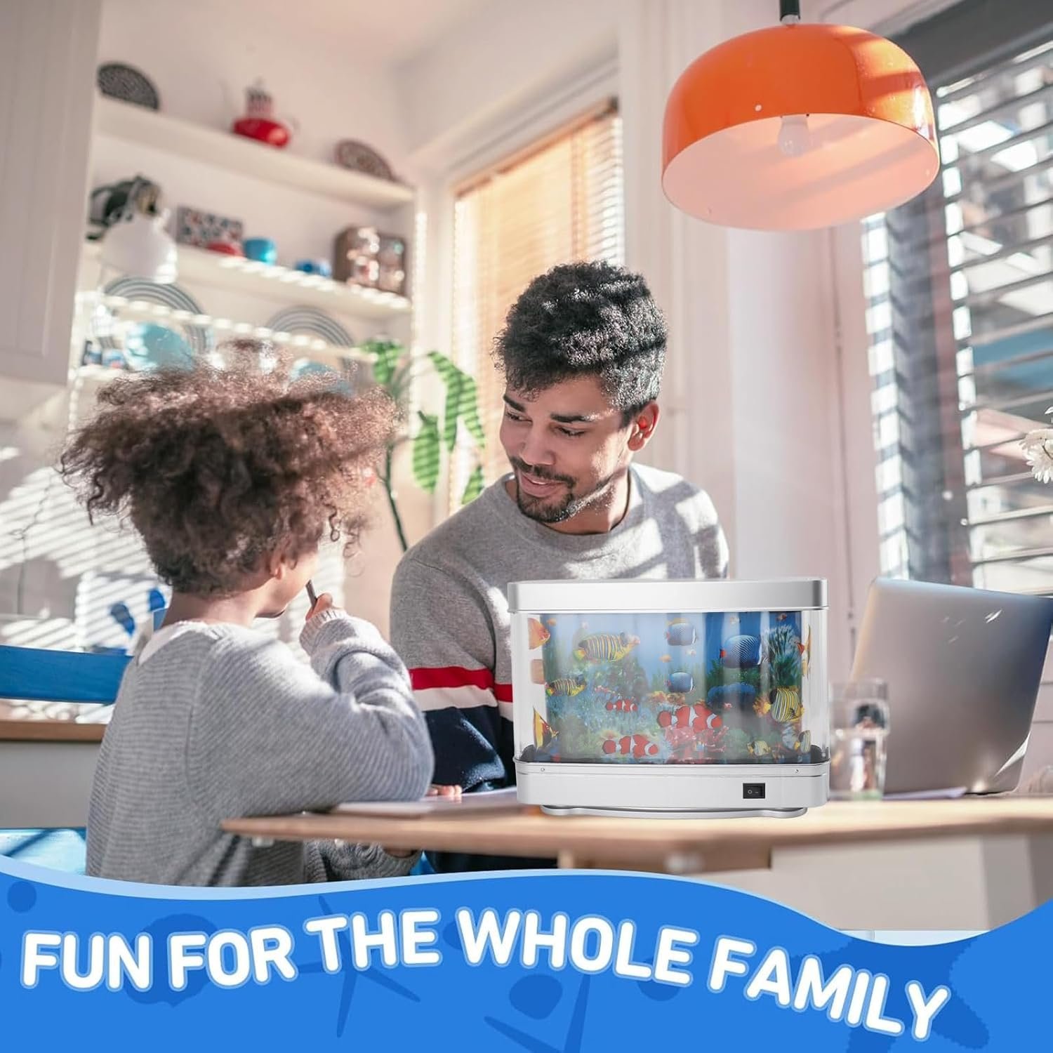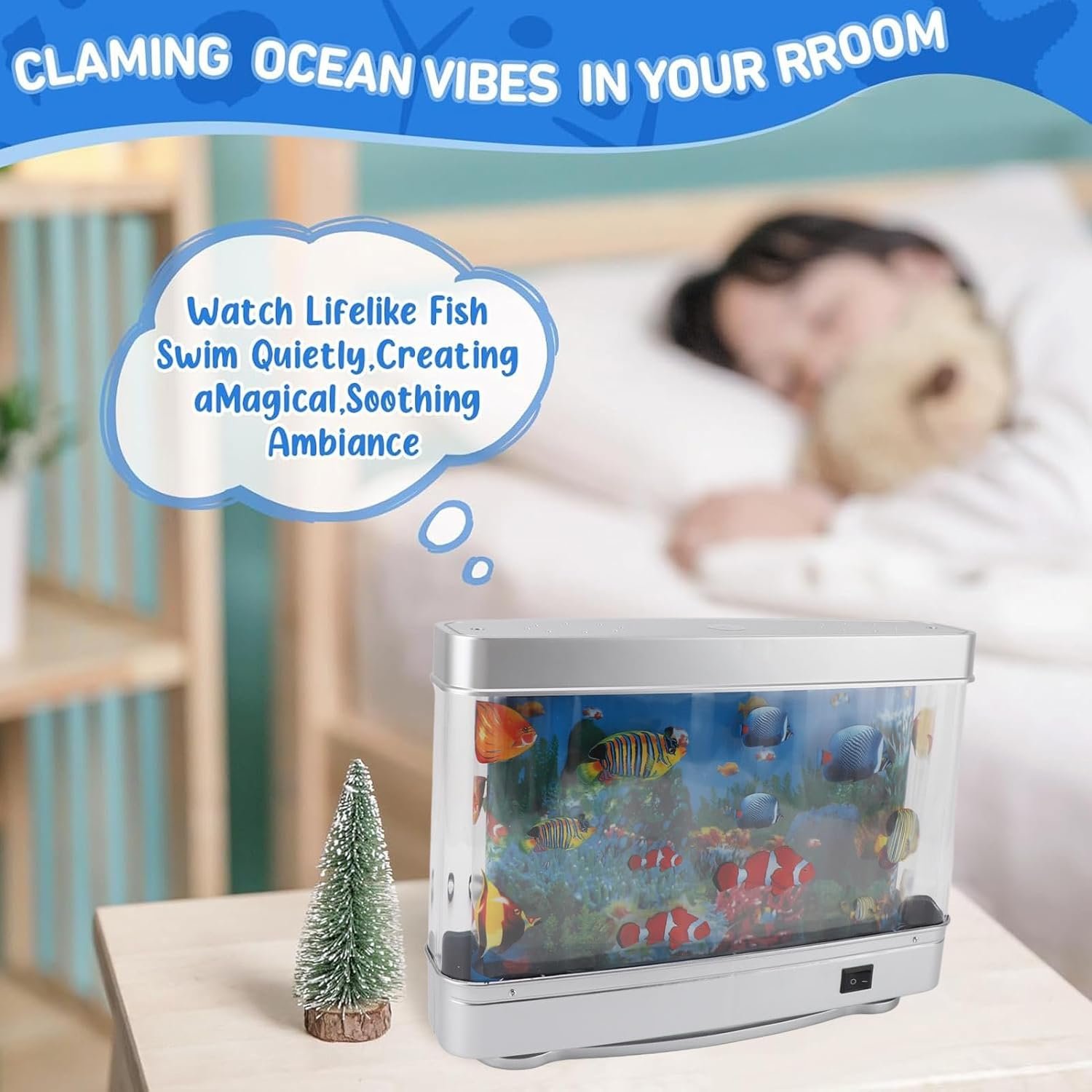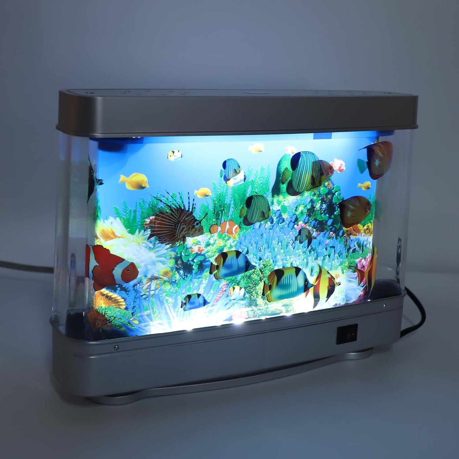 [REALISTIC AND VIBRANT]: The artificial tropical fish aquarium features interesting images of tropical fish, and dynamic images create the illusion of water and tropical fish in motion. There are also multi-colored artificial fish that are lifelike and add a unique ocean feeling. It is an light that can make people feel calm and comfortable, and can bring you Come to some relief.