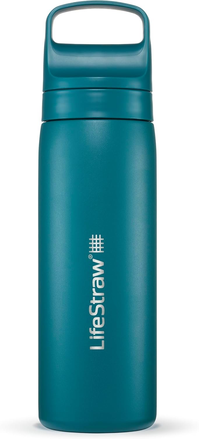 LifeStraw Go Series – Insulated Stainless Steel Water Filter Bottle for Travel and Everyday use removes Bacteria, parasites and microplastics, Improves Taste