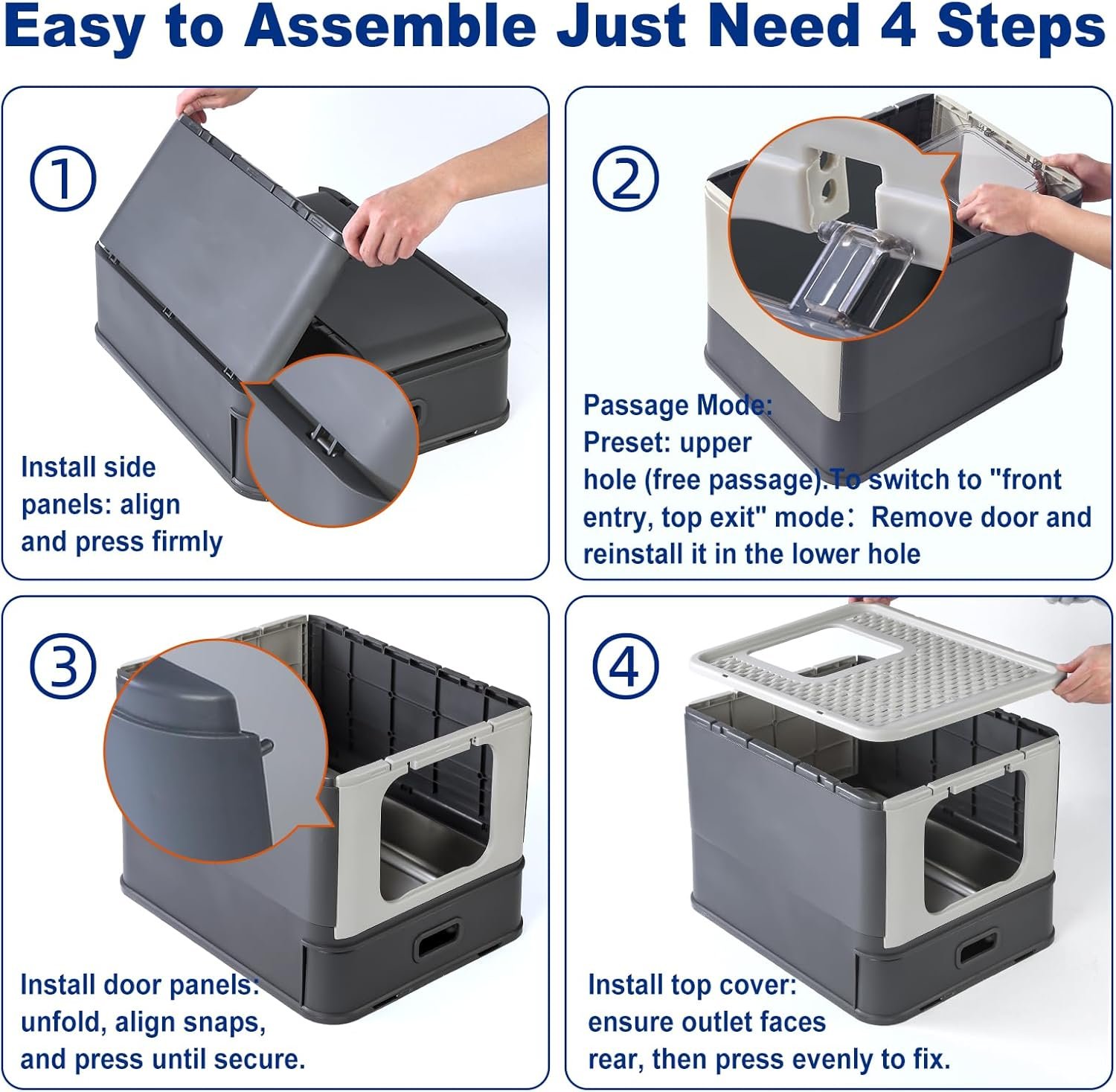 Free Access and Top-only Access: The dual-entry adjustable design adapts to different pet habits and physical conditions, while the precisely sized front entrance fits less than 12 lbs. Choose Top-only Access to stop litter-tracking cats from scattering mess and keep curious dogs out of the litter box; opt for Free Access to let senior or short-legged cats get in and out effortlessly, reducing physical strain and improving their toilet experience