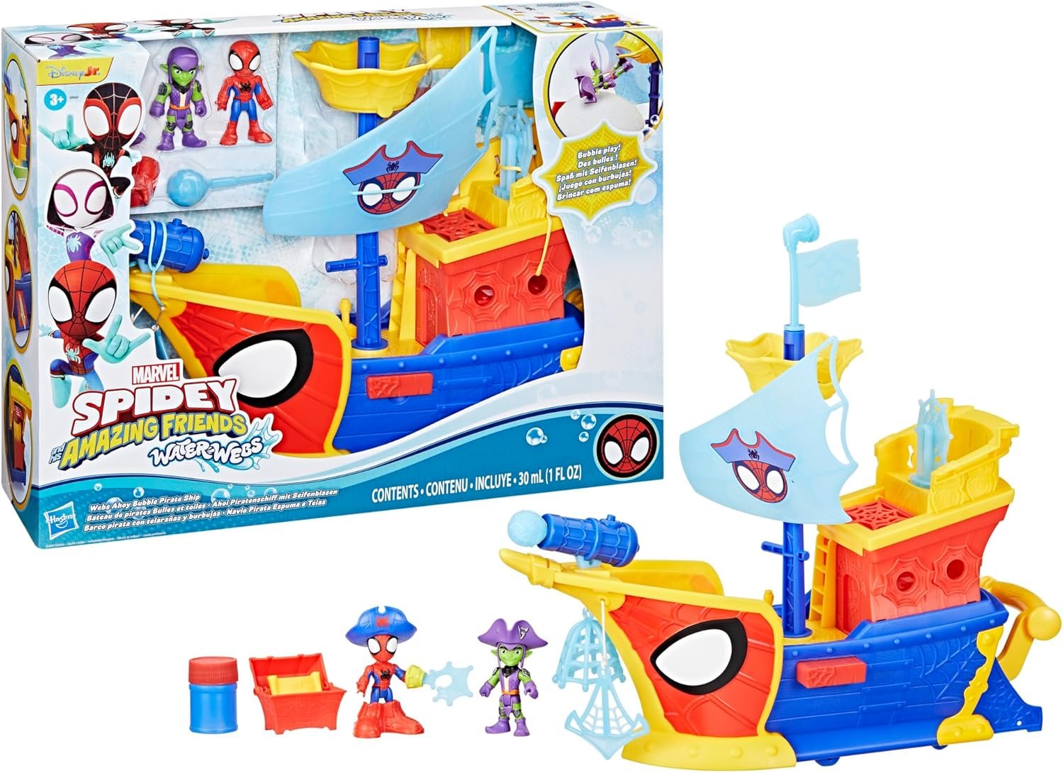 Marvel Spidey and His Amazing Friends Water-Webs Webs Ahoy Bubble Pirate Ship Toy, 3-Inch Action Figures & Boat Playset, Super Hero Toys, 3+ Years