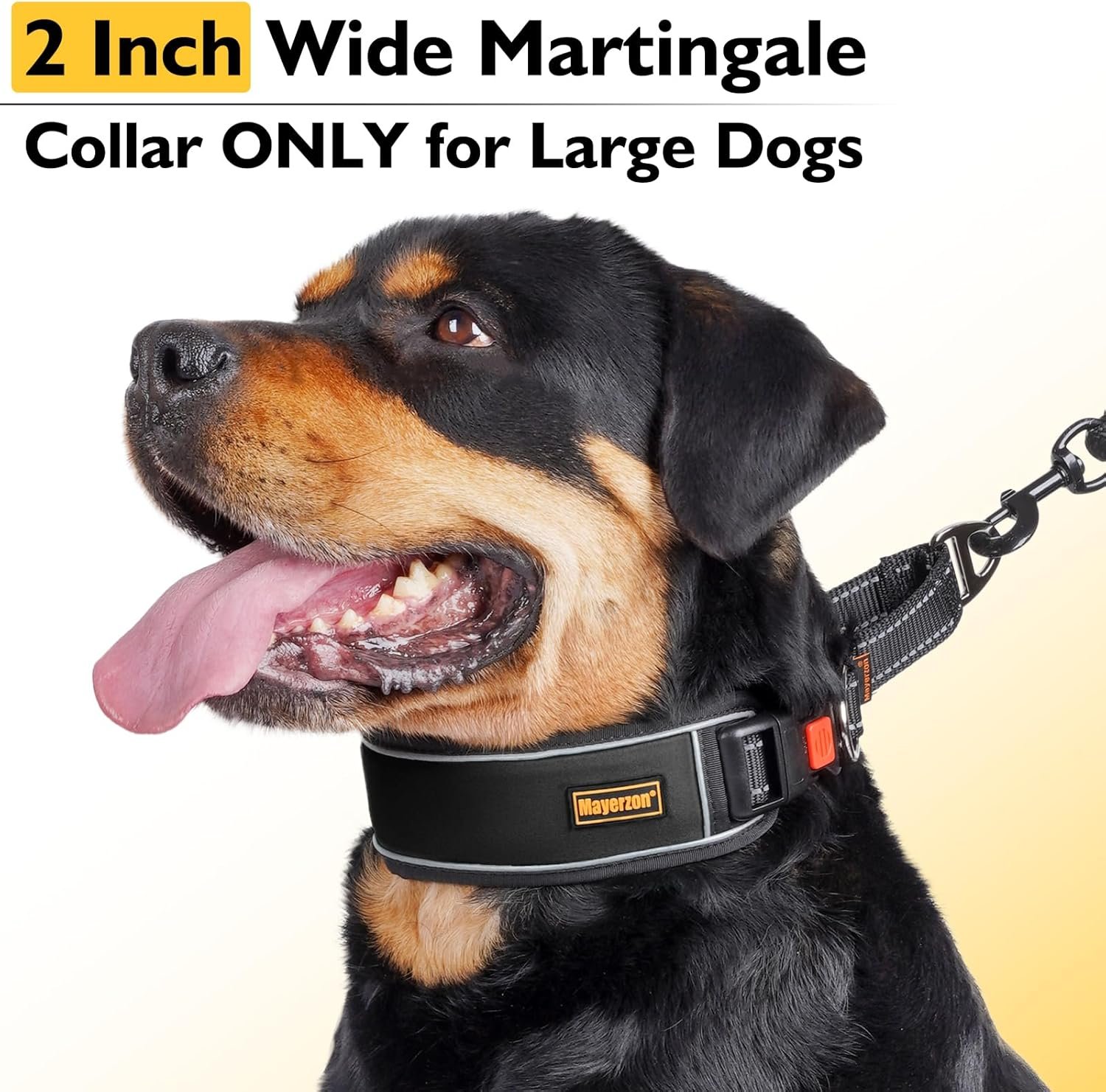 Mayerzon 2 Inch Wide Martingale Collar for Large Dogs, Patented No Pull Walking Training Dog Collar for Pitbull German Shepherd, with Buckle, Reflective Stitching, Adjustable (Black, L)