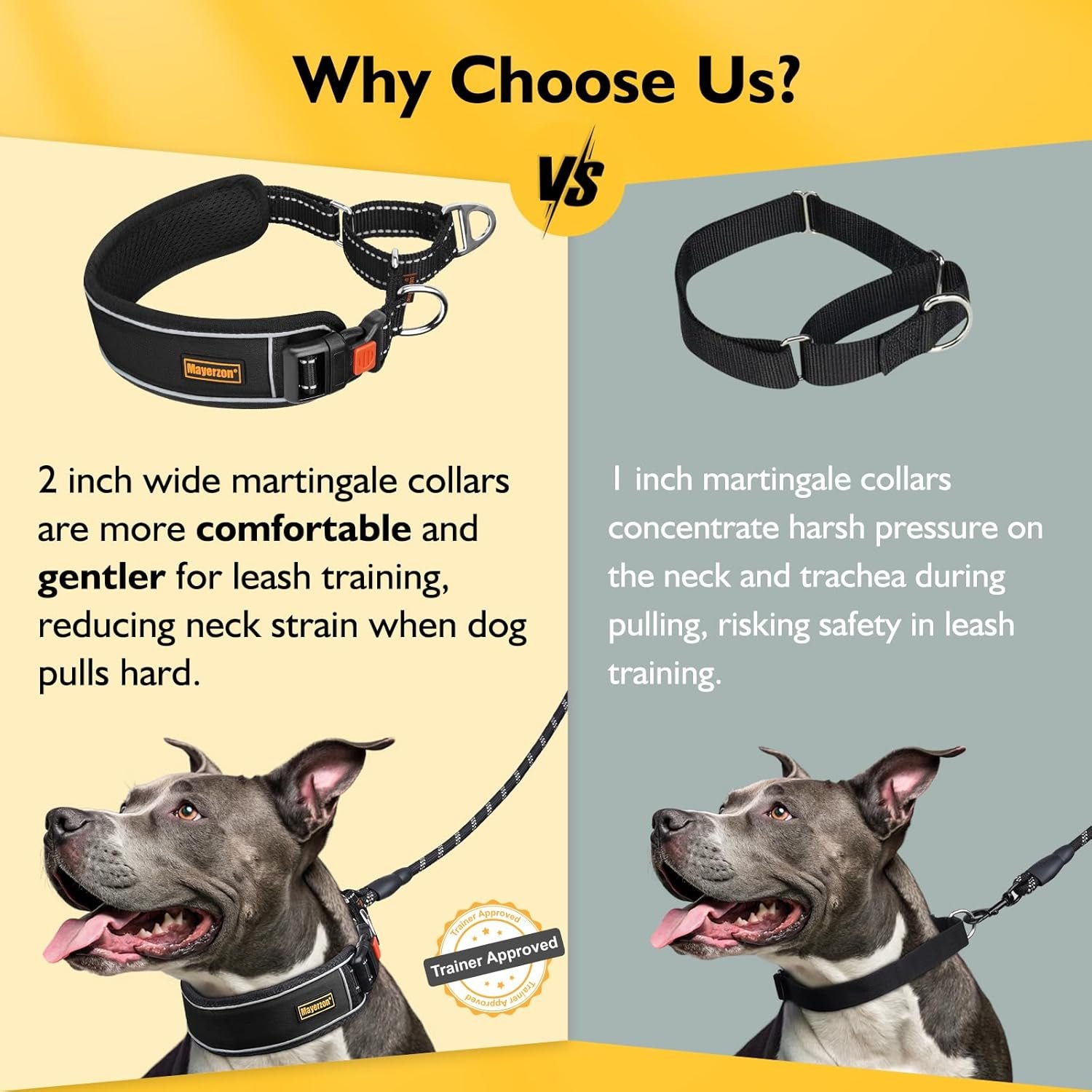 Recommended by Trainers: The wide martingale collar that pull are more comfortable and safer for leash training than narrow ones—The wide band reduces strain on the neck and trachea when dogs pull hard, especially keeping large breeds secure during training and walking.