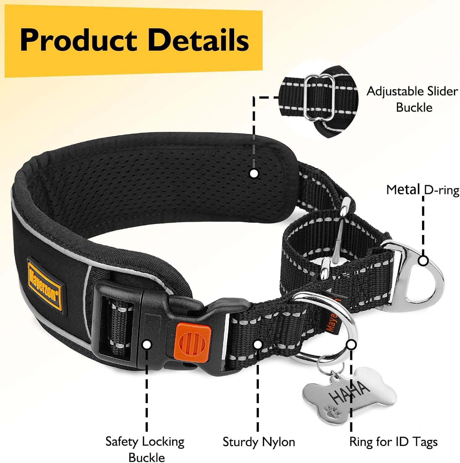Easy to Use: Our martingale collar for dogs that pull comes with a slider that lets you adjust the length perfectly to fit your dog’s neck. The quick-release safety buckle is handy for emergencies or just making it easy to put on and take off. There’s a strong stainless steel D-ring for attaching your leash, and an extra ring to keep your dog’s ID tag secure.