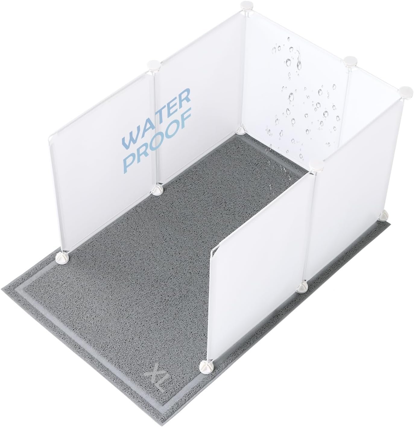 DIY Splash Guard : It is composed of several sheets and connectors and could be freely matched to install, or spliced into 27.9 x 21.5 x 17.6 in XL litter box enclosure; You could DIY the splash guard shape and size according to the size of your cat litter box.