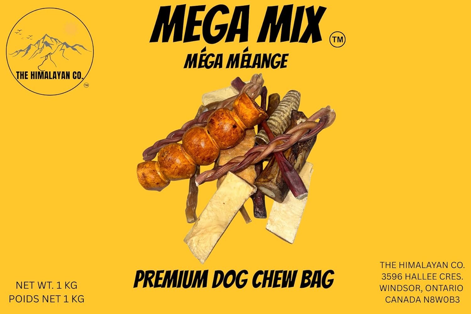 *(FOR LARGE/XL DOGS)* THE HIMALAYAN CO. MEGA MIX Dog Chew Bag contains many of our long-lasting chews and treats. Our MEGA MIX retails for double the price if the chews are bought separately. We save you the customer by creating are MEGA MIX WITH OVERSTOCK… still 100% NATURAL AND HAND PICKED FOR QUALITY AND FRESHNESS.