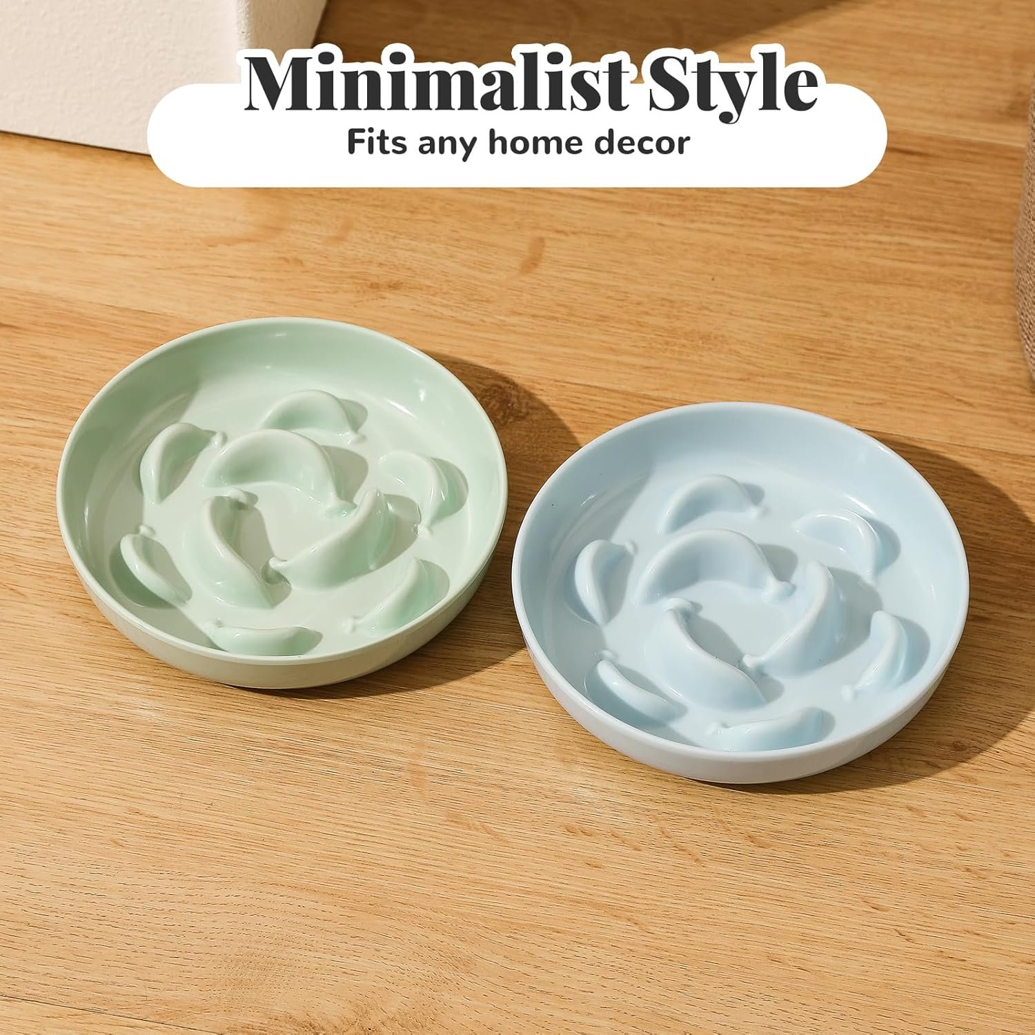 Melamine Cat Slow Feeder Bowl – Pastel Series Cat Plate for Dry and Wet Food – Cute Maze Feeder Dish for Healthy Eating – Dishwasher Safe – 6.3”W x 1.2”H – 7 OZ – Mint Green