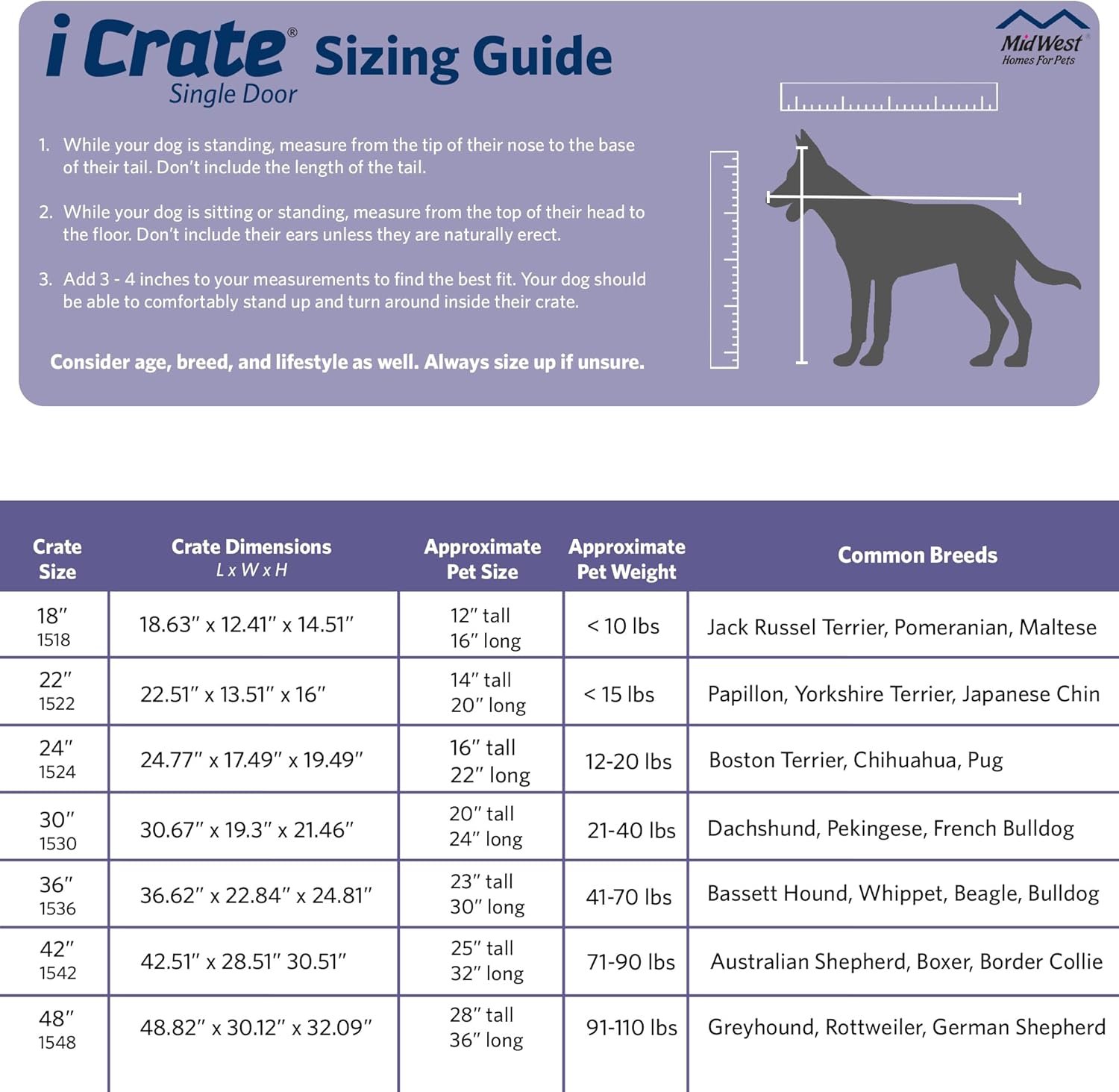 The “all inclusive” icrate, folding metal dog crate by midwest homes for pets includes all of the features you will need to provide a convenient, safe and secure pet home for your best friend. This durable metal dog crate includes a free divider panel allowing you to adjust the size of the dog crate while your dog is still growing, a plastic leak-proof pan for easy clean-up in the event of an accident, a strong plastic carrying handle for easy portability and rubber “roller” feet on the bottom of the crate to protect your floors inside the home. Midwest icrates also feature our patented side clips which reinforce the dog crate & reduce possible sharp points ensuring a safe experience for you and your pet. Every icrate metal dog crate folds down flat for convenient storage. The 30″ metal icrate (model 1530) measures 30l x 19w x 21h inches & is suitable for “medium” dog breeds. We at midwest homes for pets understand that your dog is a part of your family and that’s why we ensure our dog crates are manufactured with the highest quality control standards creating a safe home for your pet that you can feel confident with.