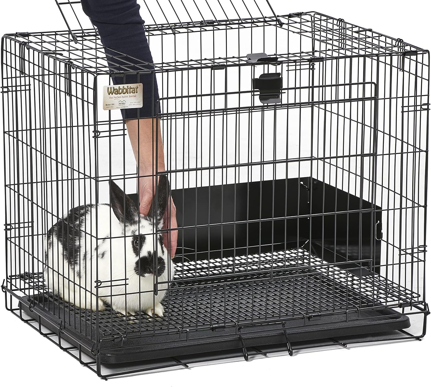 MidWest Homes for Pets Wabbitat Folding Rabbit Cage, 64cm x 47cm x 52cm, Includes 1.27cm per Square Floor Grid and Removable Plastic Tray, Black, Model 151