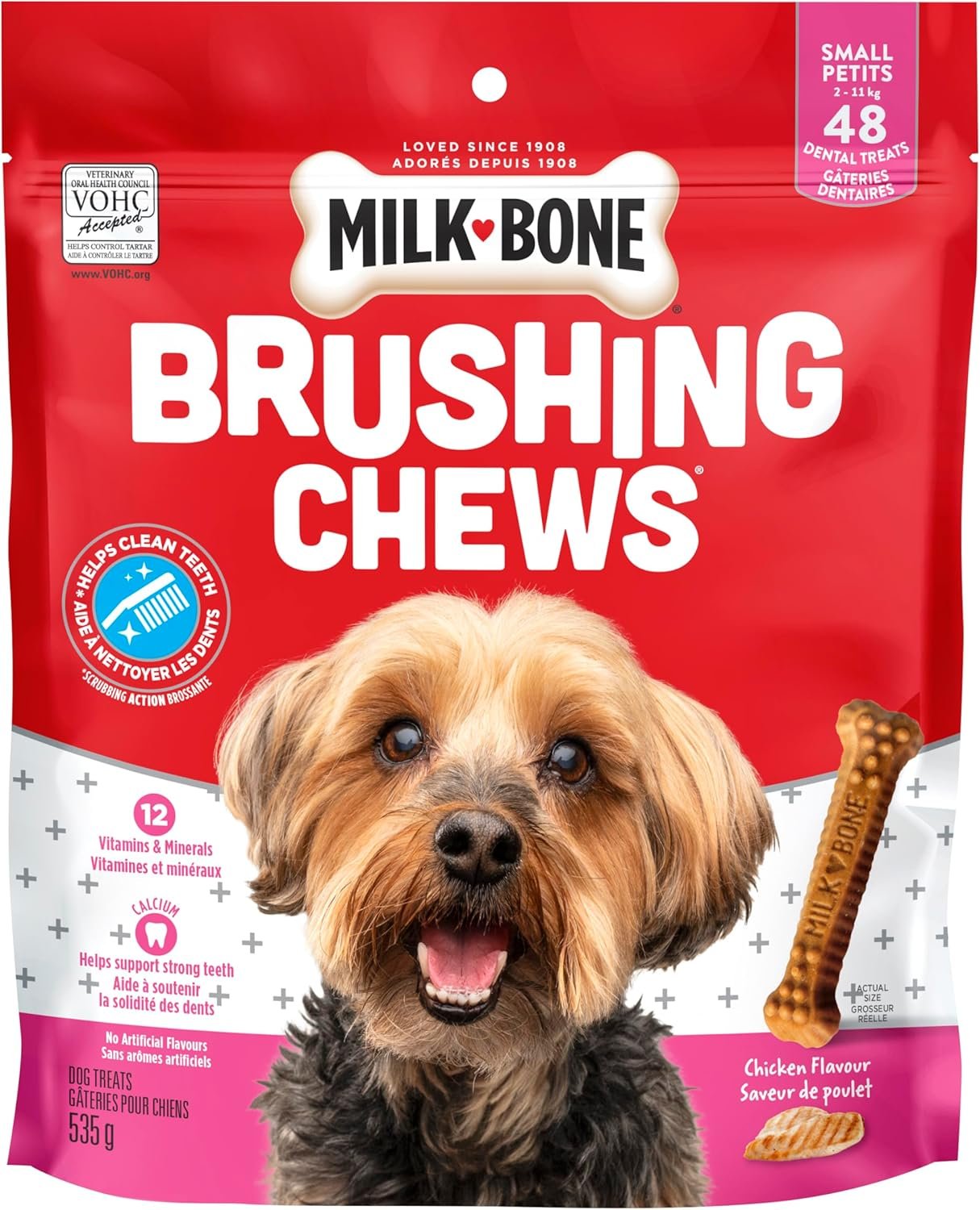 Milk-Bone Brushing Chews Dental Dog Treats, Chicken Flavour Dental Chew, Helps Clean Teeth and Reduce Bad Breath, For Small Dogs, 48 Treats (Pack of 1)