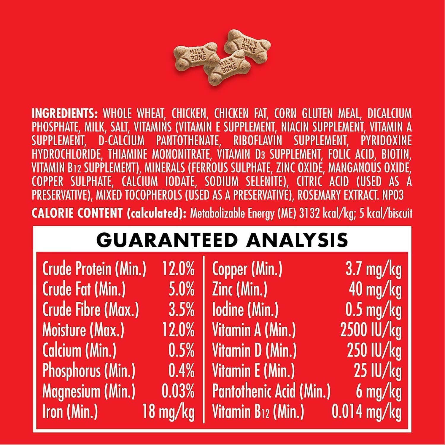 Milk-Bone Original Dog Biscuits are crunchy snacks that are wholesome and delicious. These tasty oven baked dog treats are made with real chicken and prepared with care by the makers of Milk-Bone dog snacks, these tasty treats will give your dog the simple, genuine joy that your dog gives you every day. A dog’s life is way more fun when you have the right dog treat nearby. These classic time-tested treats keep the paws raising, the tails wagging and the spirits high, as part of your rewards for good behaviour and training. The perfect mini sized bone shaped treats for small and toy breeds as well as for frequent treating of small, medium and large sized dogs, only 5 calories per treat, the perfect treat to help train your dog’s good behaviour habits.