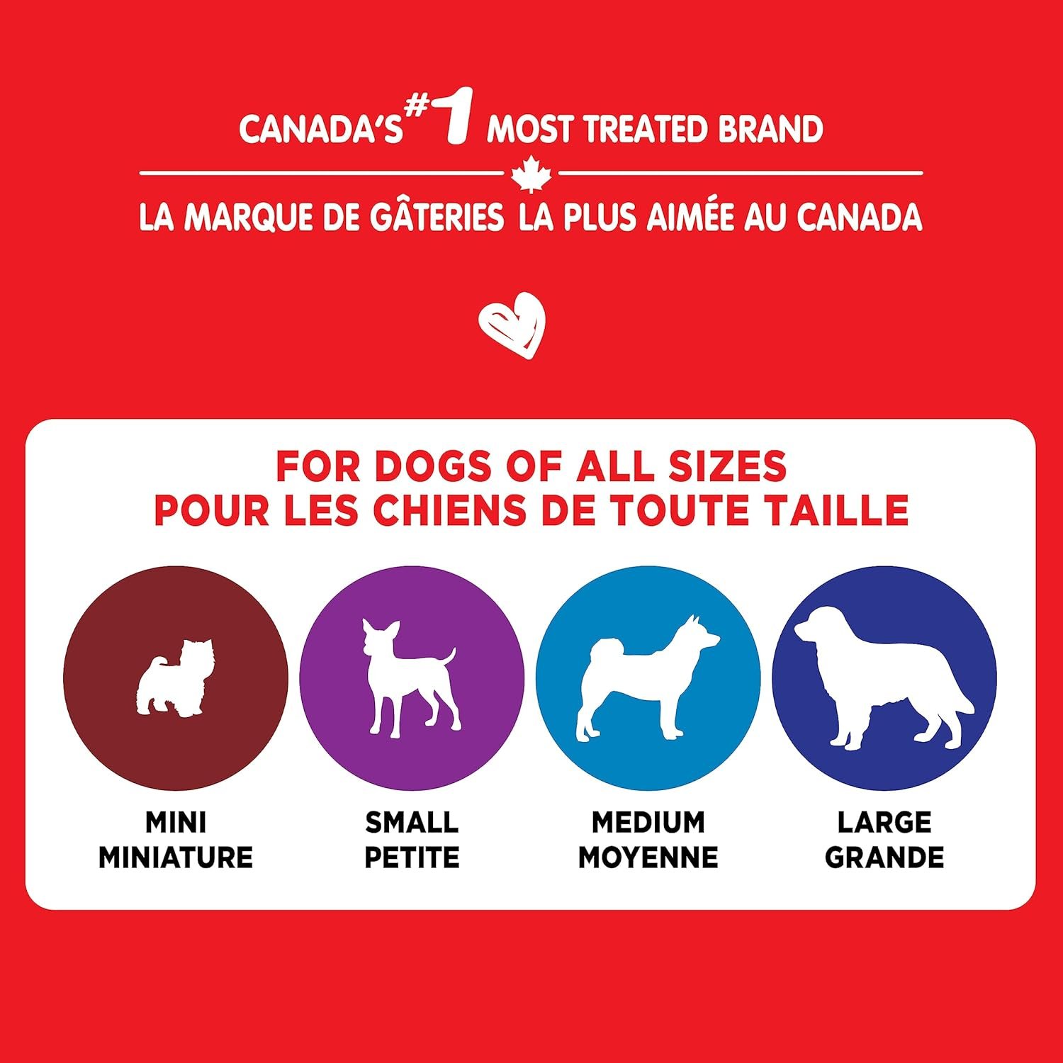 Your dog is fun, so shouldn’t their treat be as well? A perfect Canadian treat to reward for good behaviour and training, soft and chewy enough for even senior dogs to learn new tricks. Serve up a filet mignon, steak & cheese, beef steak or chicken flavoured Milk-Bone Soft & Chewy Dog Treat and your dog will thank you! Prepared with care by the makers of Milk-Bone dog treats, these Tender, chewy treats with a delicious taste your dog will love, gives your dog the simple genuine joy that your dog gives you every day.
