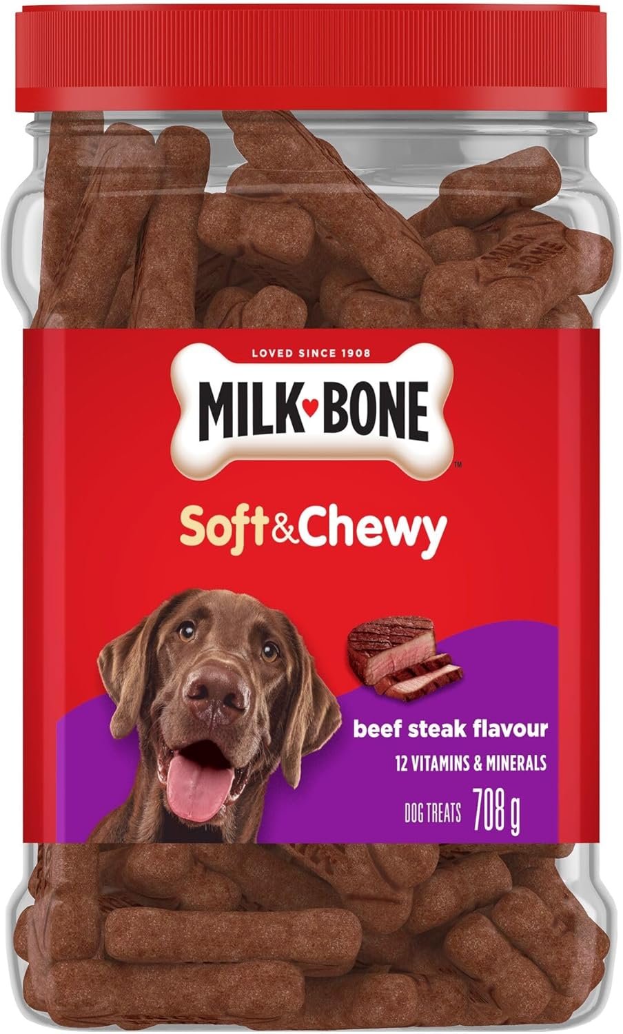 Milk-Bone Soft & Chewy Dog Treats, Tender Oven Baked Snacks Made with Tasty Wholesome Ingredients, Beef Steak Flavour, 708 g (Pack of 1)